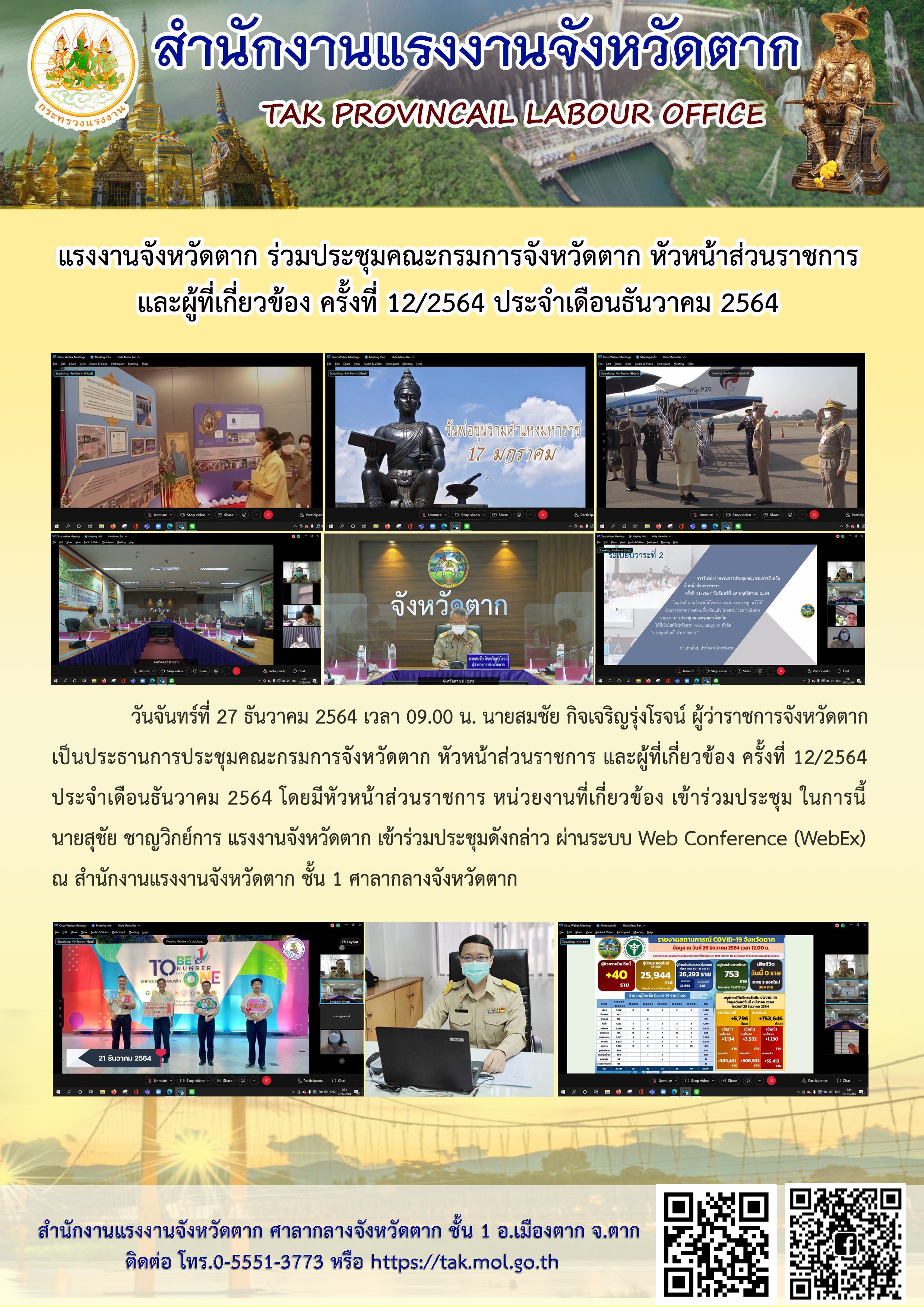 แรงงานจังหวัดตาก ร่วมประชุมคณะกรมการจังหวัดตาก หัวหน้าส่วนราชการ และผู้ที่เกี่ยวข้อง ครั้งที่ 12/2564 ประจำเดือนธันวาคม 2564