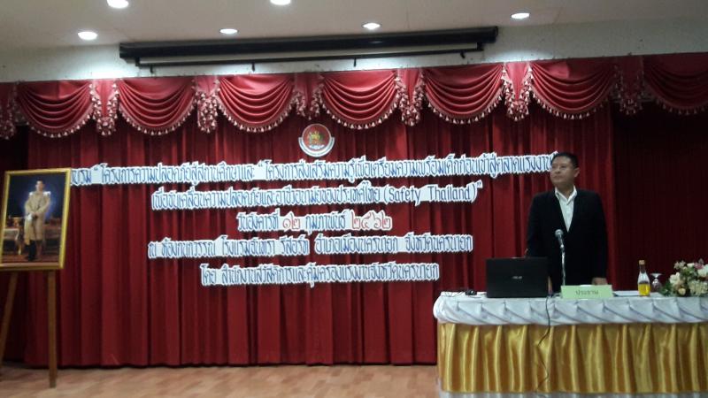 เมื่อวันที่ 12 กุมภาพันธ์ 2562 นายสมชาย เอื้อจารุพร แรงงานจังหวัดนครนายก ร่วมเปิดการอบรมโครงการความปลอดภัยสู่สถานศึกษา (สำหรับนักเรียน/นักศึกษา ก่อนเข้าสู่ตลาดแรงงานหลังจบการศึกษา) เพื่อขับเคลื่อนความปลอดภัยและอาชีวอนามัยของประเทศไทย (Safety Thailand) ร่วมกับโครงการส่งเสริมความรู้เพื่อเตรียมความพร้อมเด็กก่อนเข้าสู่ตลาดแรงงาน โดยมี นายอำนาจ แย้มศิริ ปลัดจังหวัดนครนายก เป็นประธานเปิดการอบรม ณ ห้องประชุมกนกวรรณ โรงแรมจันทรา รีสอร์ท อ.เมืองนครนายก จ.นครนายก