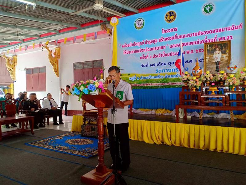 เมื่อวันที่ 17 ตุลาคม 2561 นายสมชาย เอื้อจารุพร แรงงานจังหวัดนครนายก พร้อมด้วยหัวหน้าส่วนราชการสังกัดกระทรวงแรงงานจังหวัดนครนายก เข้าร่วมโครงการ "หน่วยบำบัดทุกข์ บำรุงสุข สร้างรอยยิ้มและความปรองดองสมานฉันท์ ให้ประชาชนจังหวัดนครนายก" โดยมี นายณัฐพงศ์ ศิริชนะ ผู้ว่าราชการจังหวัดนครนายก เป็นประธาน ณ วัดทางกระบือ อ.บ้านนา จ.นครนายก