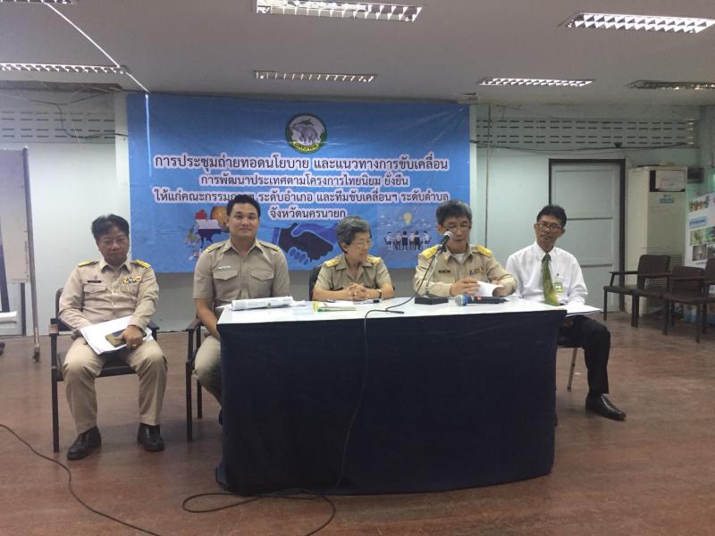 วันที่ 19 กุมภาพันธ์ 2561 นายสมชาย เอื้อจารุพร แรงงานจังหวัดนครนายก เป็นวิทยากรถ่ายทอดนโยบายและแนวทางการขับเคลื่อนการพัฒนาประเทศตามโครงการไทยนิยม ยั่งยืน ให้แก่คณะกรรมการระดับอำเภอ และขับเคลื่อนระดับตำบล โดยมี นายณัฐพงศ์ ศิริชนะ ผู้ว่าราชการจังหวัดนครนายก เป็นประธาน ณ หอประชุมอำเภอองครักษ์ และ หอประชุมอำเภอบ้านนา จังหวัดนครนายก