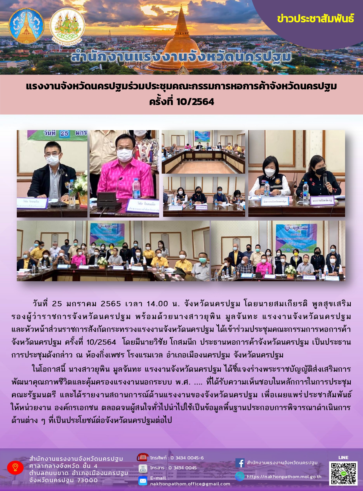 แรงงานจังหวัดนครปฐม ร่วมประชุมคณะกรรมการหอการค้าจังหวัดนครปฐม ครั้งที่ 10/2564
