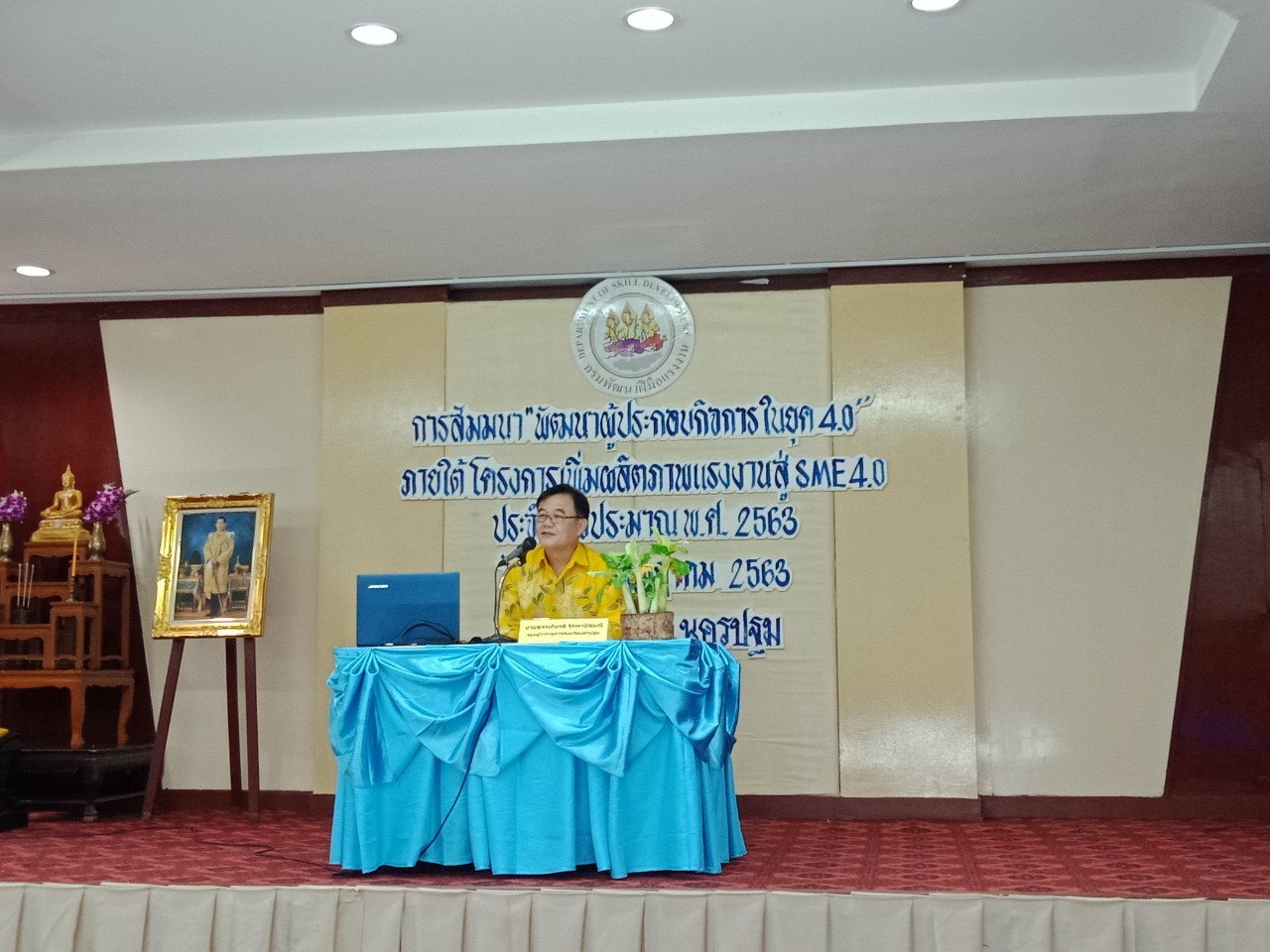 วันที่ 15 กรกฎาคม 2563 นายวิชิตร สุวรรณมาก แรงงานจังหวัดนครปฐม ร่วมพิธีเปิดโครงการเพิ่มผลิตภาพแรงงาน สู่ SME 4.0 ประจำปีงบประมาณ พ.ศ.2563 ณ ห้องกิ่งดาว โรงแรมเวล ตำบลพระปฐมเจดีย์ อำเภอเมืองนครปฐม จังหวัดนครปฐม จัดโดยสถาบันพัฒนาฝีมือแรงงาน 16 นครปฐม โดยมีรองผู้ว่าราชการจังหวัดนครปฐม (นายขจรเกียรติ รักพานิชมณี) เป็นประธานในพิธี