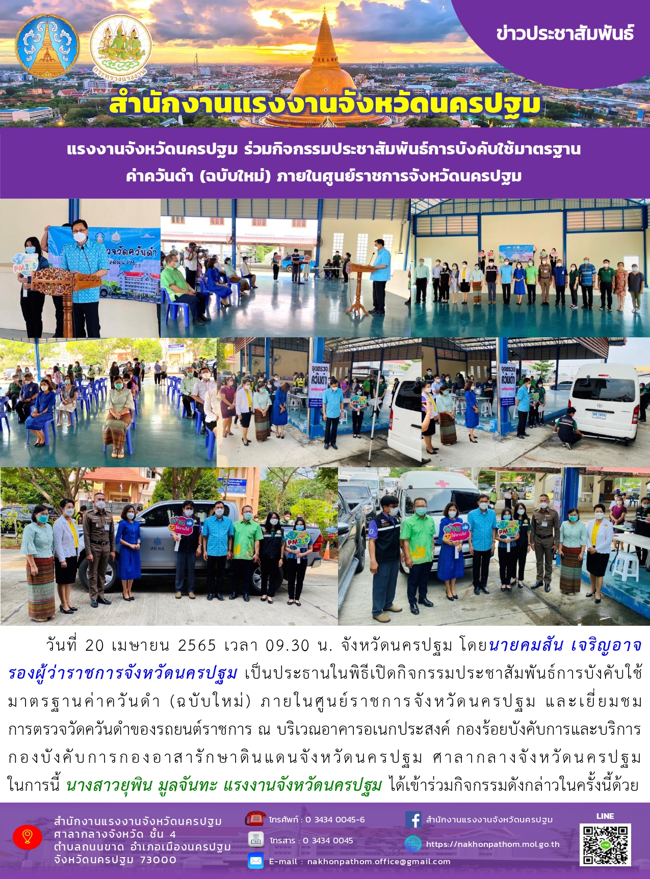 แรงงานจังหวัดนครปฐม ร่วมกิจกรรมประชาสัมพันธ์การบังคับใช้มาตรฐานค่าควันดำ (ฉบับใหม่) ภายในศูนย์ราชการจังหวัดนครปฐม