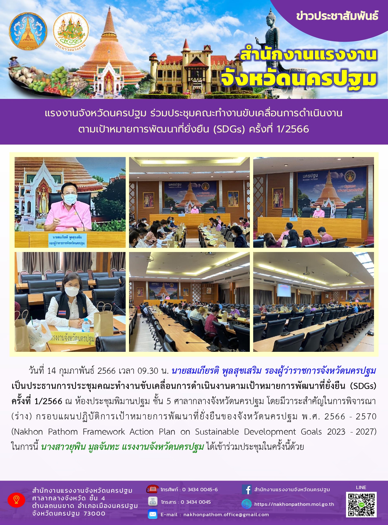 แรงงานจังหวัดนครปฐม ร่วมประชุมคณะทำงานขับเคลื่อนการดำเนินงานตามเป้าหมายการพัฒนาที่ยั่งยืน (SDGs) ครั้งที่ 1/2566