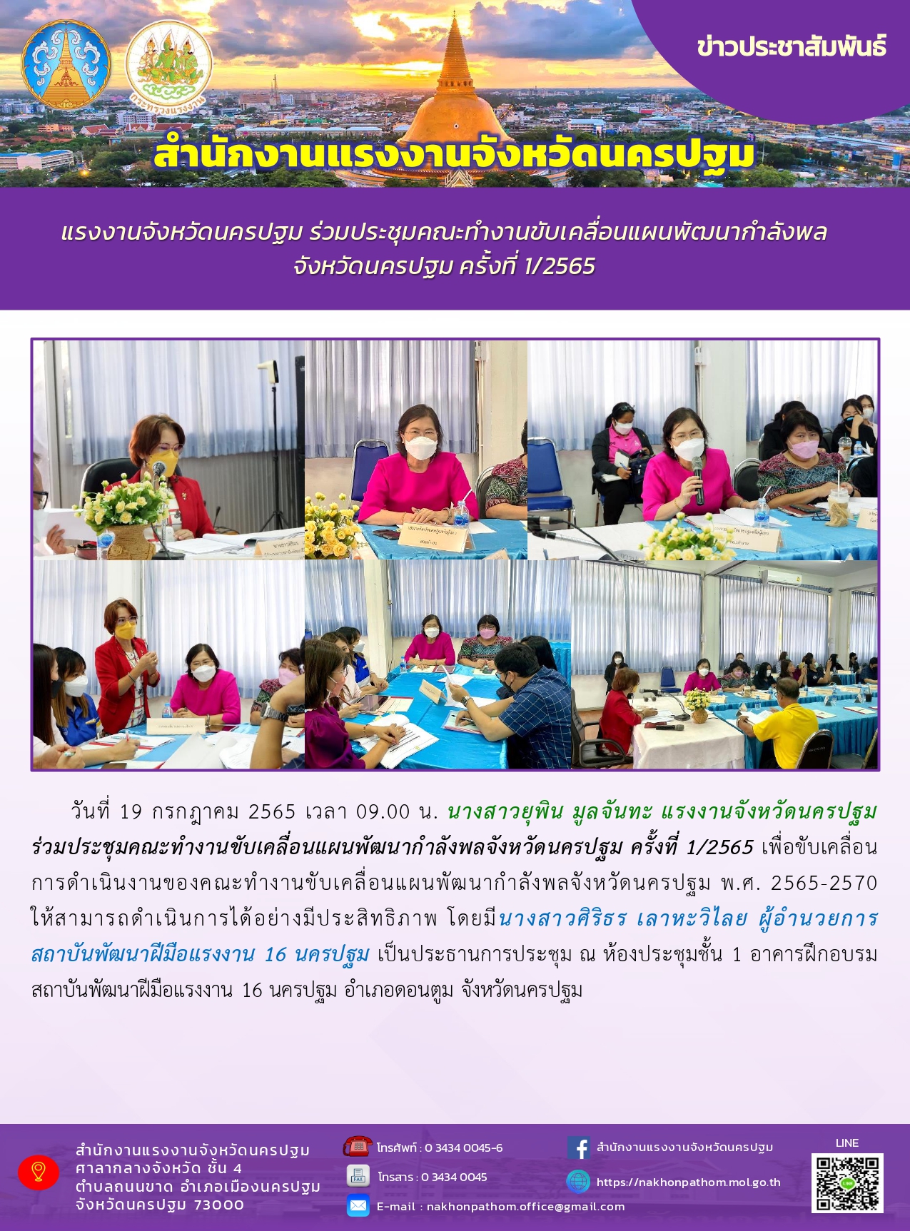 แรงงานจังหวัดนครปฐม ร่วมประชุมคณะทำงานขับเคลื่อนแผนพัฒนากำลังพลจังหวัดนครปฐม ครั้งที่ 1/2565