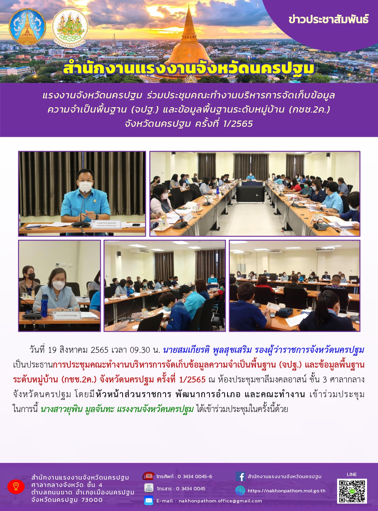 สรจ.นครปฐม ร่วมประชุมคณะทำงานบริหารการจัดเก็บข้อมูลความจำเป็นพื้นฐาน (จปฐ.) และข้อมูลพื้นฐานระดับหมู่บ้าน (กชช.2ค.) จังหวัดนครปฐม ครั้งที่ 1/2565