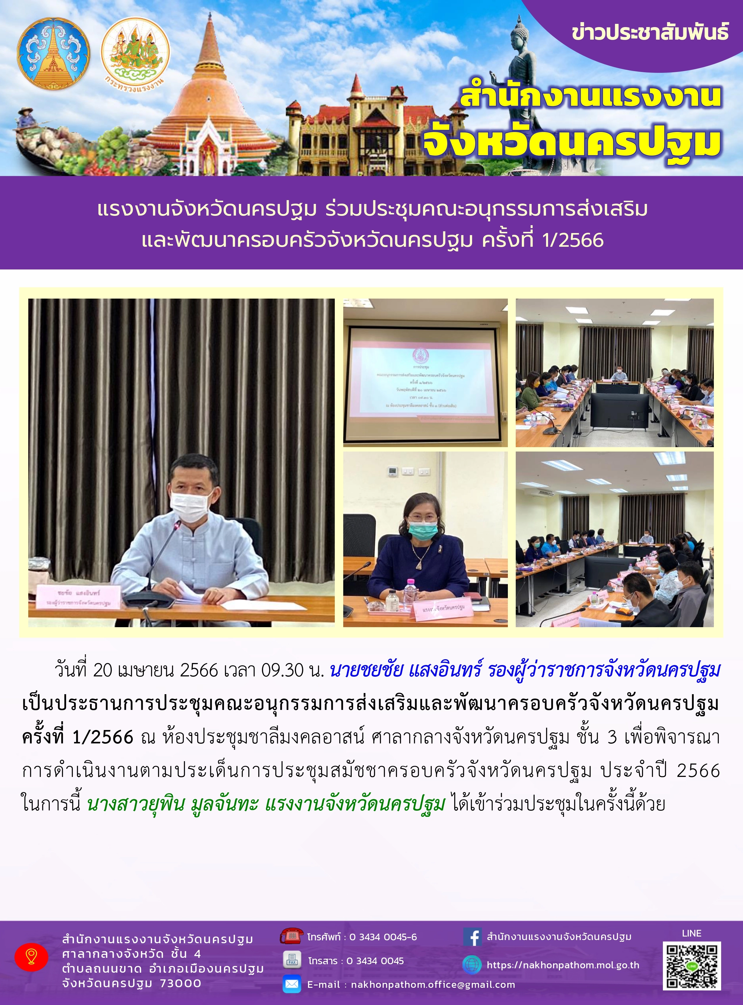 แรงงานจังหวัดนครปฐม ร่วมประชุมคณะอนุกรรมการส่งเสริมและพัฒนาครอบครัวจังหวัดนครปฐม ครั้งที่ 1/2566