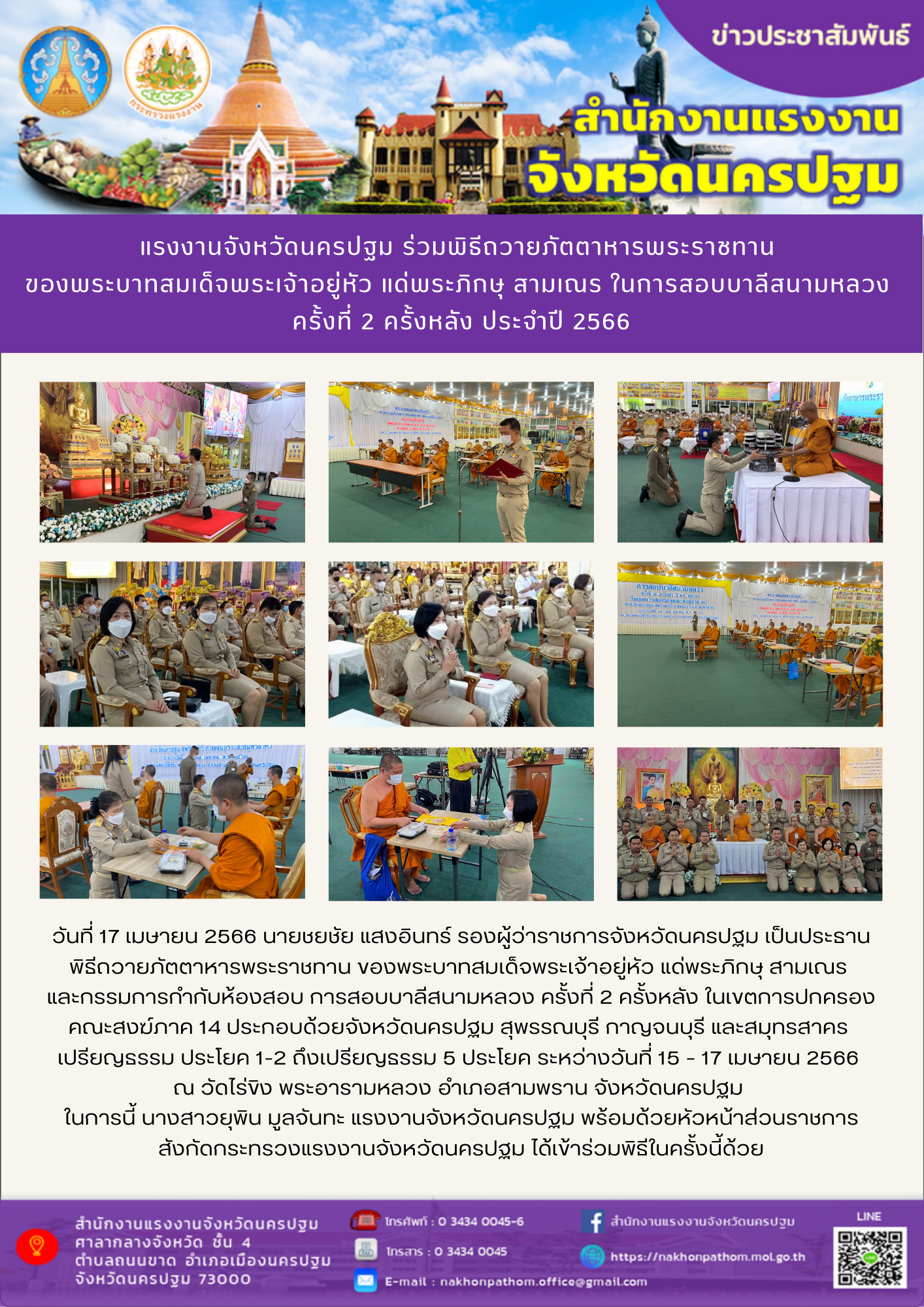 สรจ.นครปฐม ร่วมพิธีถวายภัตตาหารพระราชทาน ของพระบาทสมเด็จพระเจ้าอยู่หัว แด่พระภิกษุ สามเณร ในการสอบบาลีสนามหลวง ครั้งที่ 2 ครั้งหลัง ประจำปี 2566