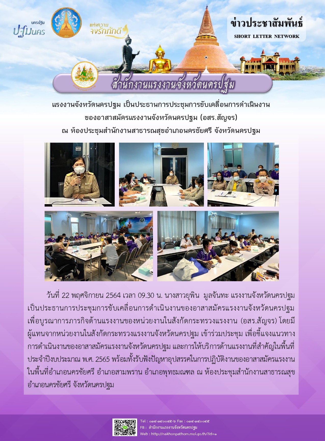 แรงงานจังหวัดนครปฐม เป็นประธานการประชุมการขับเคลื่อนการดำเนินงานของอาสาสมัครแรงงานจังหวัดนครปฐม (อสร.สัญจร) ณ ห้องประชุมสำนักงานสาธารณสุขอำเภอนครชัยศรี จังหวัดนครปฐม