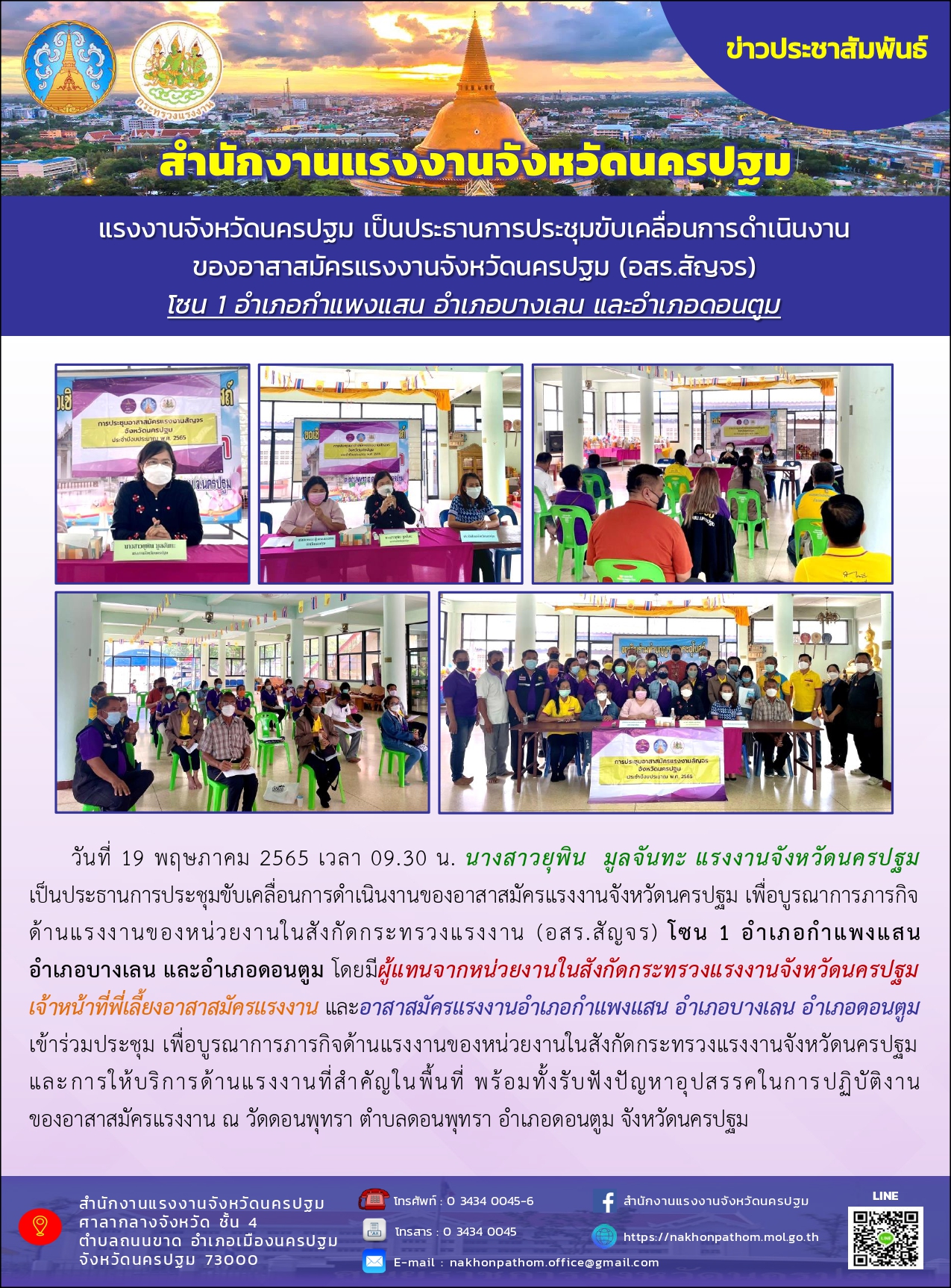 แรงงานจังหวัดนครปฐม เป็นประธานการประชุมขับเคลื่อนการดำเนินงานของอาสาสมัครแรงงานจังหวัดนครปฐม (อสร.สัญจร)