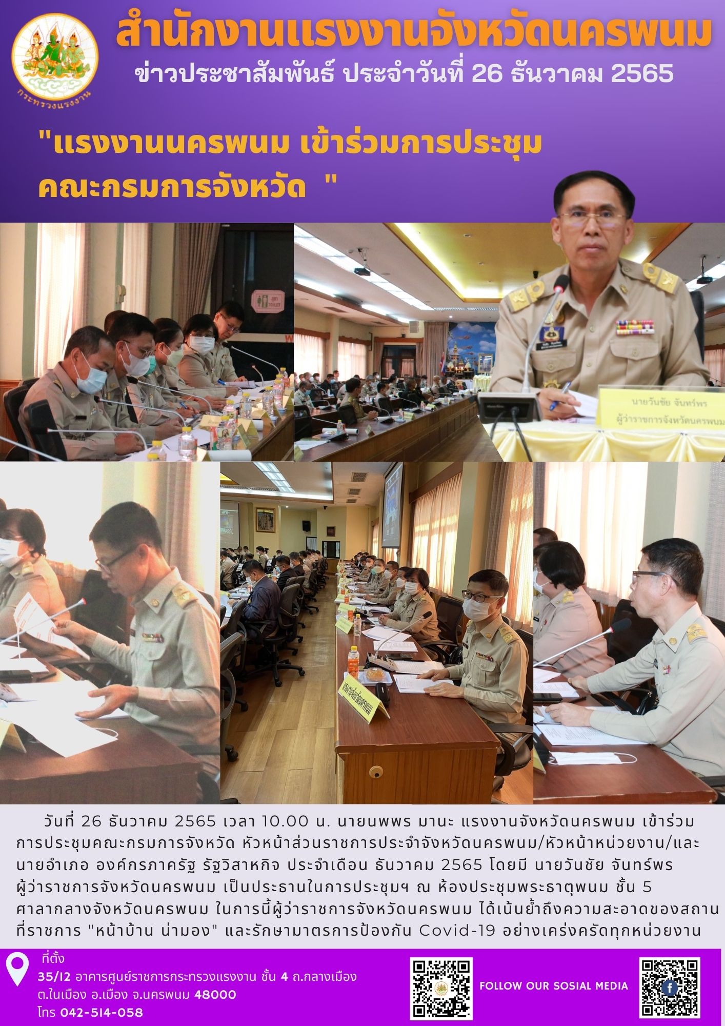 แรงงานจังหวัดนครพนม ร่วมประชุมคณะกรมการจังหวัด ประจำเดือน ธันวาคม 2565