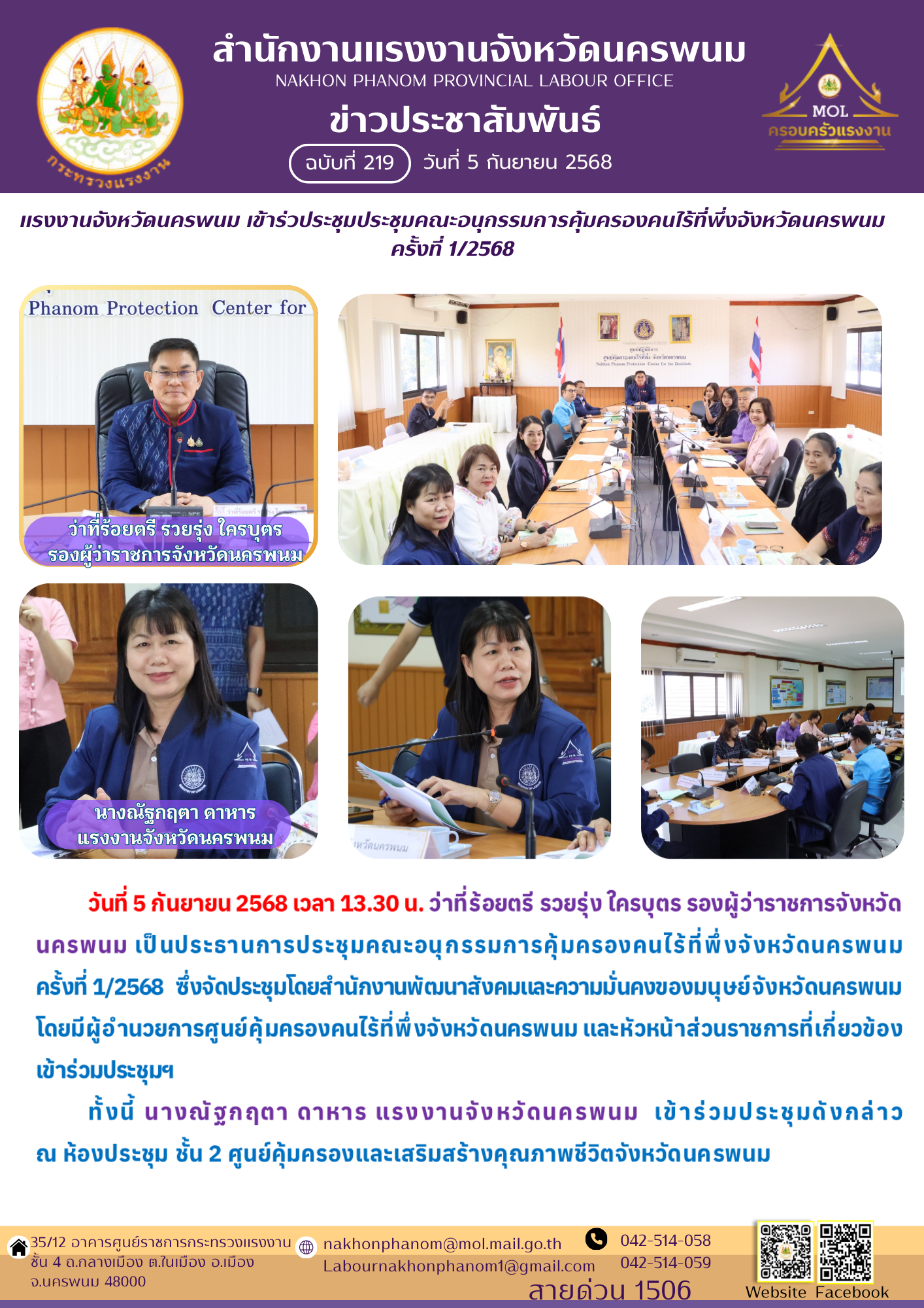 แรงงานจังหวัดนครพนม เข้าร่วประชุมประชุมคณะอนุกรรมการคุ้มครองคนไร้ที่พึ่งจังหวัดนครพนม ครั้งที่ 1/2568