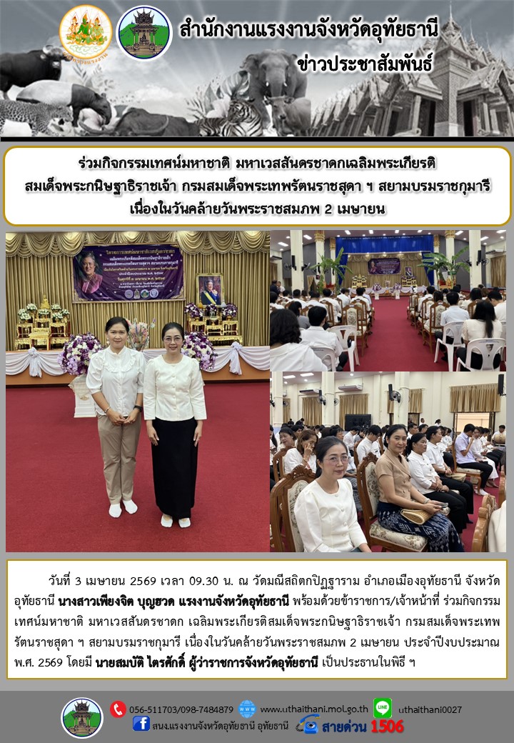 ร่วมกิจกรรมเทศน์มหาชาติ มหาเวสสันดรชาดกเฉลิมพระเกียรติ สมเด็จพระกนิษฐาธิราชเจ้า กรมสมเด็จพระเทพรัตนราชสุดา ฯ สยามบรมราชกุมารี เนื่องในวันคล้ายวันพระราชสมภพ 2 เมษายน