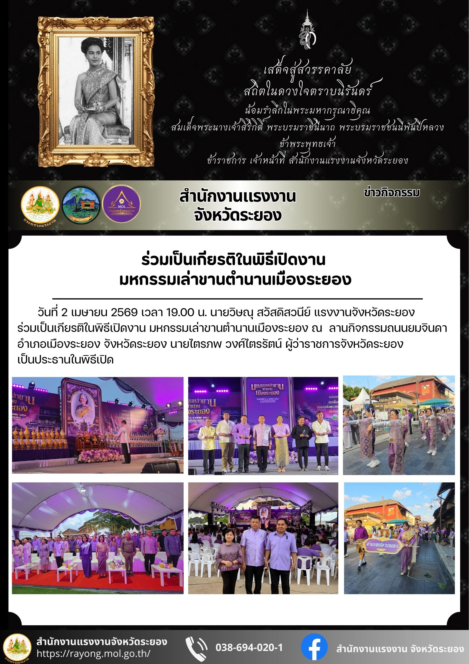 แรงงานจังหวัดระยอง ร่วมเป็นเกียรติในพิธีเปิดงาน มหกรรมเล่าขานตำนานเมืองระยอง