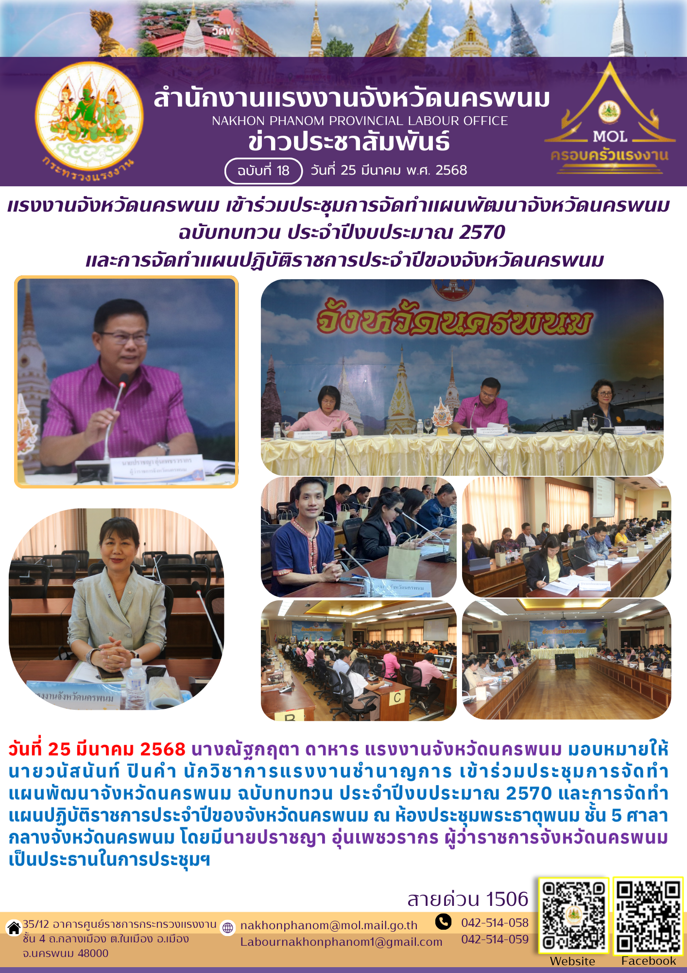 แรงงานจังหวัดนครพนม เข้าร่วมประชุมการจัดทำแผนพัฒนาจังหวัดนครพนม ฉบับทบทวน ประจำปีงบประมาณ 2570 และการจัดทำแผนปฏิบัติราชการประจำปีของจังหวัดนครพนม