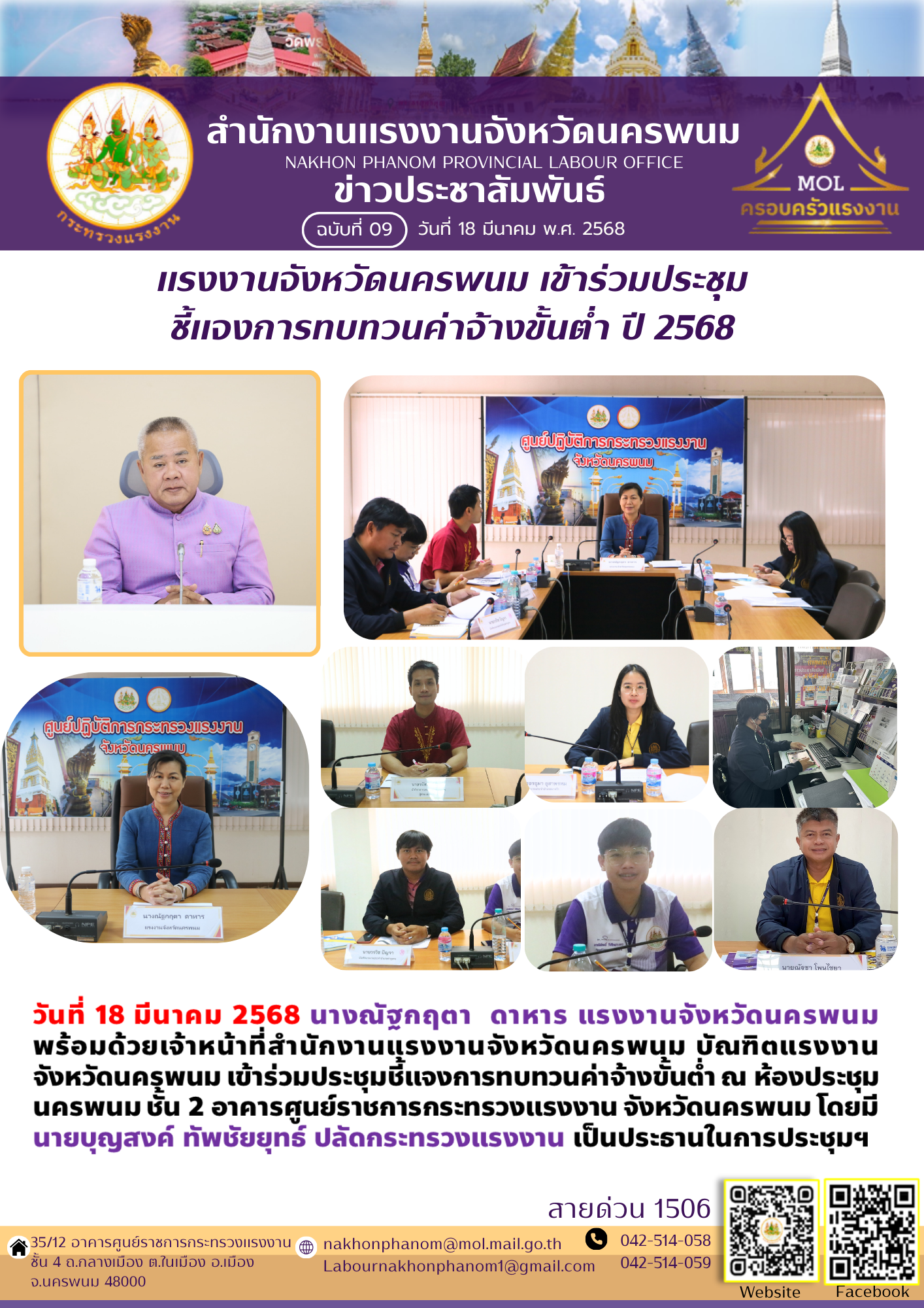 แรงงานจังหวัดนครพนม เข้าร่วมประชุม ชี้แจงการทบทวนค่าจ้างขั้นต่ำ ปี 2568