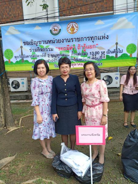 วันที่ ๙ ตุลาคม ๒๕๖๑ เวลา ๑๓.๐๐ น. เป็นต้นไป ณ บริเวณศาลากลางจังหวัดนนทบุรี : นางกัญจนาภรณ์ ไซกัล แรงงานจังหวัดนนทบุรี พร้อมเจ้าหน้าที่สำนักงานแรงงานจังหวัดนนทบุรี ร่วมกิจกรรมตลาดนัดรีไซเคิลที่จัดขึ้นโดยสำนักงานส่งเสริมการปกครองท้องถิ่นจังหวัดนนทบุรี โดยมีนายภานุ แย้มศรี ผู้ว่าราชการจังหวัดนนทบุรี ออกตรวจเยี่ยมและเข้าร่วมกิจกรรมดังกล่าว ทั้งนี้สรจ.นนทบุรี มีการสนับสนุนกิจกรรมโดยการนำขยะในสำนักงานไปคัดแยกทิ้งร่วมกับหน่วยงานต่างๆในจังหวัดนนทบุรีด้วย