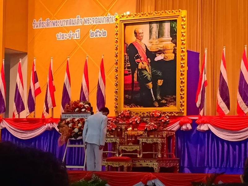 วันอังคารที่ 1 ตุลาคม 2562 ณ ห้องประชุมใหญ่ ชั้น 5 สำนักงานเทศบาลนครนนทบุรี : นางกัญจนาภรณ์ ไซกัล แรงงานจังหวัดนนทบุรี และข้าราชการสำนักงานแรงงานจังหวัดนนทบุรี ร่วมงานรัฐพิธีวันที่ระลึกพระบาทสมเด็จพระจอมเกล้าเจ้าอยู่หัว จังหวัดนนทบุรี ประจำปี 2562 โดยมีนายอำพล อังคภากรณ์กุล รองผู้ว่าราชการจังหวัดนนทบุรี เป็นประธานในพิธี รวมถึงเป็นตัวแทนจังหวัดนนทบุรีวางพวงมาลาถวายราชสักการะในครั้งนี้