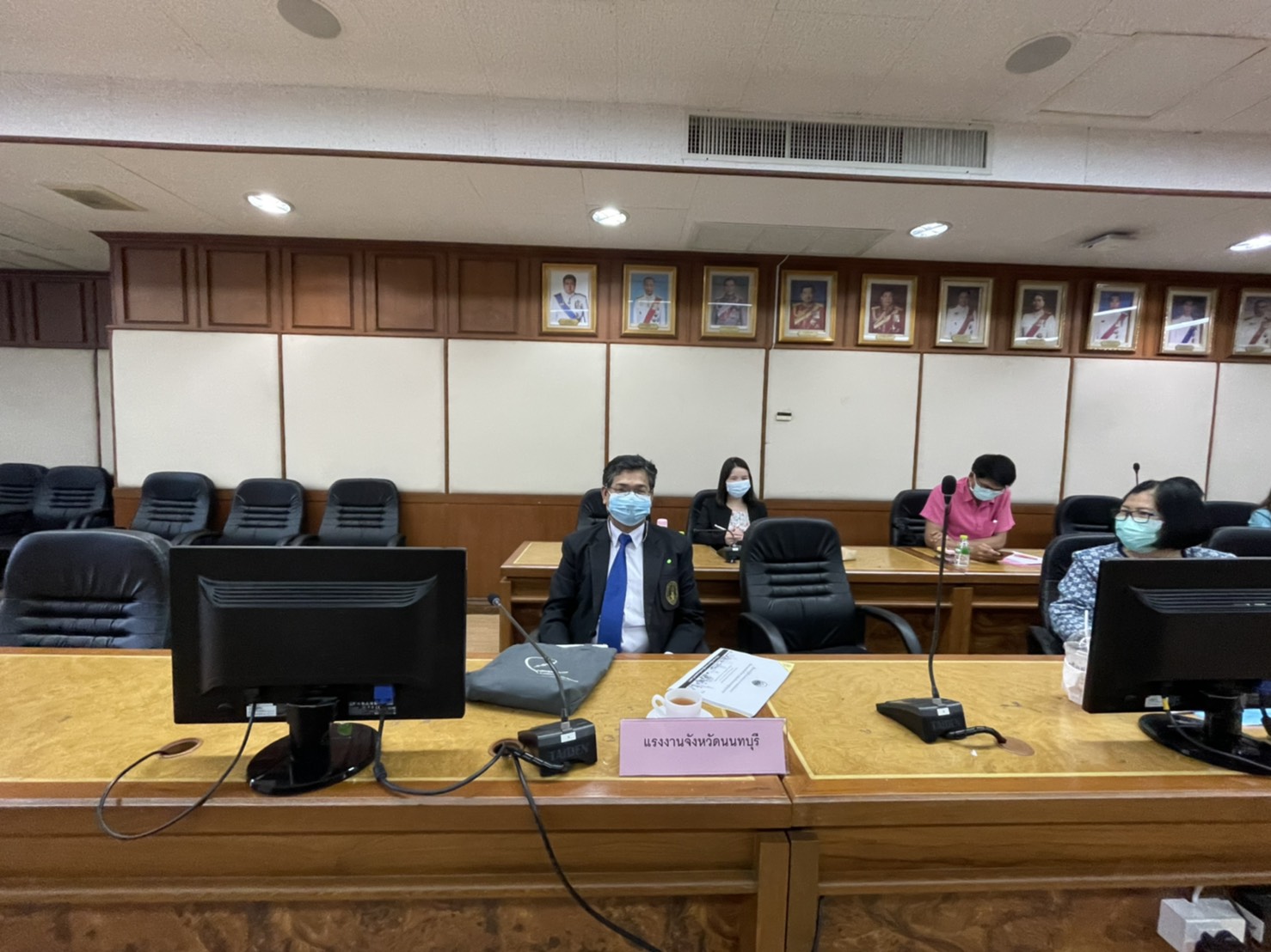 วันที่ ๙ เมษายน ๒๕๖๔ เวลา ๑๓.๐๐น. นายวิชิตร สุวรรณมาก แรงงานจังหวัดนนทบุรี นางสาวโสภิตา อินทรีย์วงศ์ นักวิชาการแรงงานชำนาญการ และนางสาวอธิชา ทองเหลือ นักวิชาการแรงงานปฏิบัติการ ร่วมประชุมหารือตามแนวทางการขับเคลื่อนไทยไปด้วยกัน ณ ห้องประชุมประสงค์ รณะนันท์ ชั้น ๕ กระทรวงแรงงาน โดยมี นายสุชาติ ชมกลิ่น รัฐมนตรีว่าการกระทรวงแรงงาน เป็นประธานการประชุม พร้อมด้วยแรงงานจังหวัดสมุทรปราการ แรงงานจังหวัดปทุมธานี และเจ้าหน้าที่ที่เกี่ยวข้องเข้าร้วมการประชุมดังกล่าว