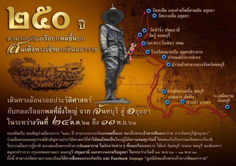 วันที่ 5 พฤศจิกายน 2561 ณ วัดกู้ ตำบลบางพูด อำเภอปากเกร็ด จังหวัดนนทบุรี : ในช่วงเวลา 11.00 น. นางกัญจนาภรณ์ ไซกัล แรงงานจังหวัดนนทบุรี ร่วมพิธีส่งขบวนเรือฯ พิธีอัญเชิญพระบรมรูปสมเด็จพระเจ้าตากสินมหาราช จากวัดกู้ อ.ปากเกร็ด จ.นนทบุรี ไปยังจังหวัดปทุมธานี โดยทางจังหวัดนนทบุรีมีนายอำพล อังคภากรณ์กุล รองผู้ว่าราชการจังหวัดนนทบุรี เป็นประธานในพิธี ต่อมาในเวลา 12:30 – 16.30 น. มีการแสดงสื่อวีดีทัศน์เทิดพระเกียรติสมเด็จพระเจ้าตากสินมหาราชให้แก่เยาวชนนักเรียนนักศึกษาและประชาชน ที่เข้าร่วมพิธีในครั้งนี้