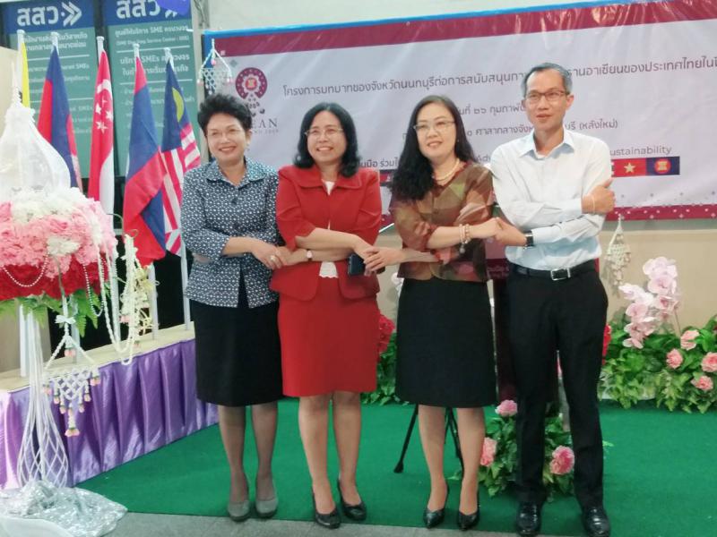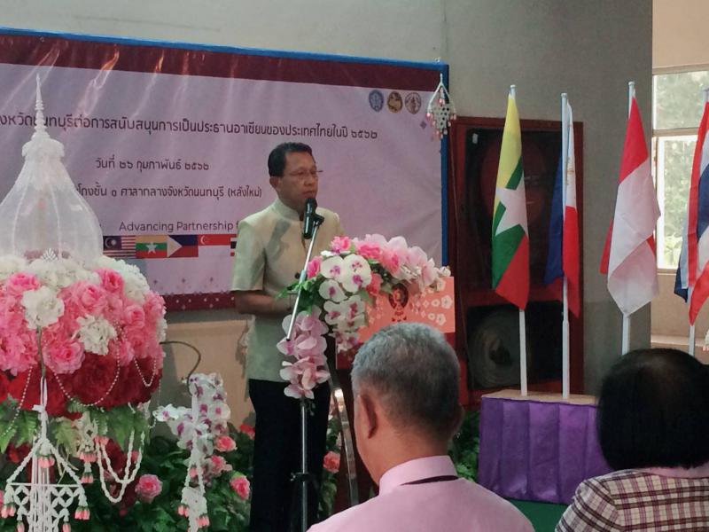 วันอังคารที่ 26 กุมภาพันธ์ 2562 เวลา 09.30 น. ณ บริเวณโถงชั้น 1 ศาลากลางจังหวัดนนทบุรี : นางกัญจนาภรณ์ ไซกัล แรงงานจังหวัดนนทบุรี ร่วมพิธีเปิดนิทรรศการ “บทบาทของจังหวัดนนทบุรีต่อการสนับสนุนการเป็นประธานอาเซียนของประเทศไทยในปี 2562” โดยมีนายภานุ แย้มศรี ผู้ว่าราชการจังหวัดนนทบุรี เป็นประธานในพิธี กิจกรรมดังกล่าวจัดขึ้นเพื่อเผยแพร่ประชาสัมพันธ์ให้ความรู้ ความเข้าใจ รวมทั้งสร้างความตระหนักถึงความสำคัญของการดำรงตำแหน่งประธานอาเซียนของไทยให้แก่บุคลากรและประชาชนโดยทั่วไปได้มีความรู้ และมีส่วนร่วมในการเป็นเจ้าภาพที่ดี ทั้งนี้มีหัวหน้าส่วนราชการในจังหวัดนนทบุรี รวมถึงประชาชนทั่วไปเข้าร่วมงานเป็นจำนวนมาก