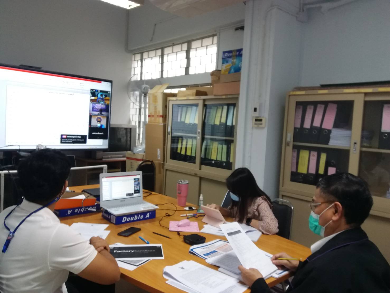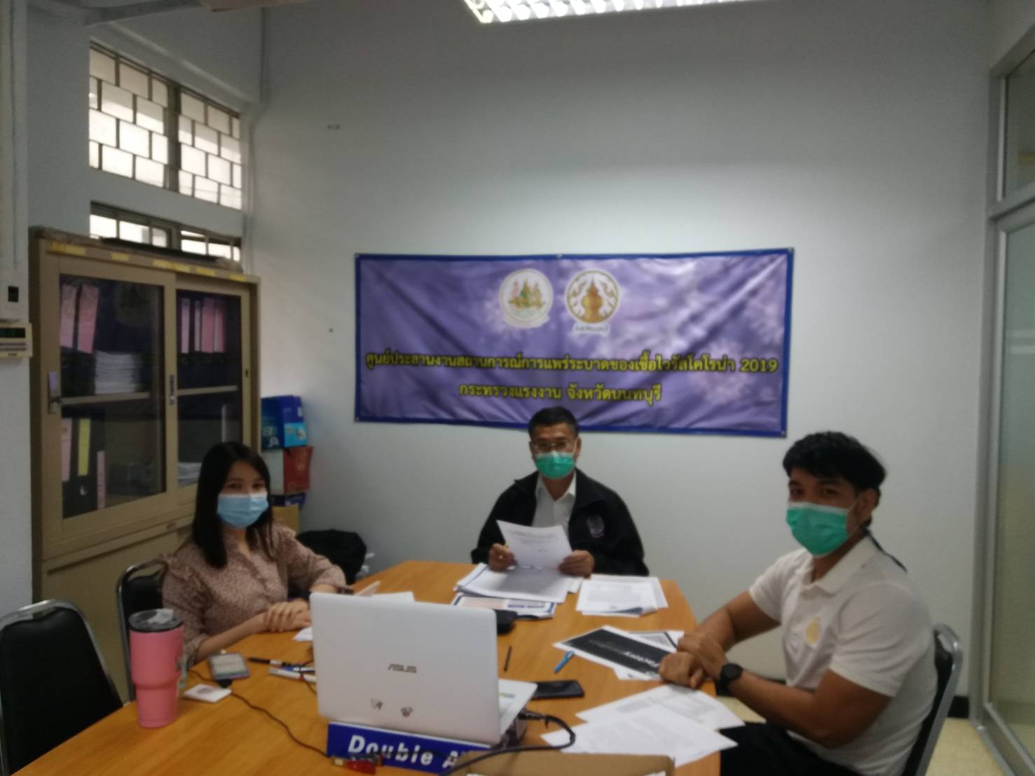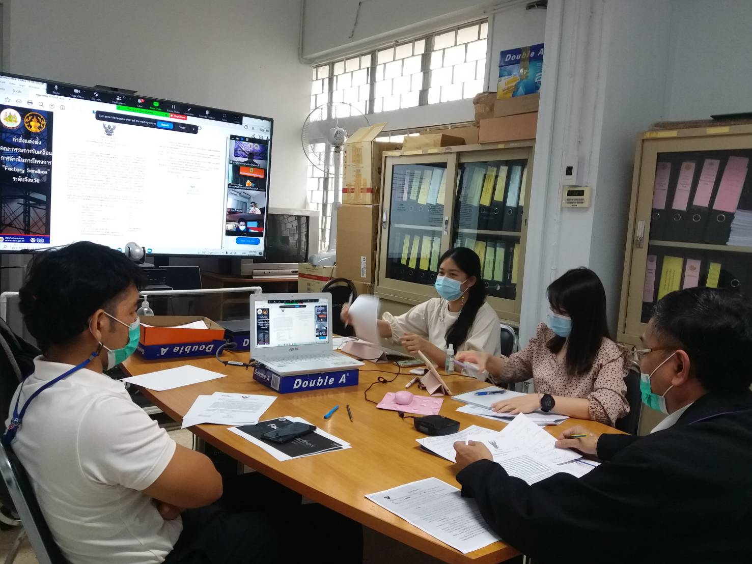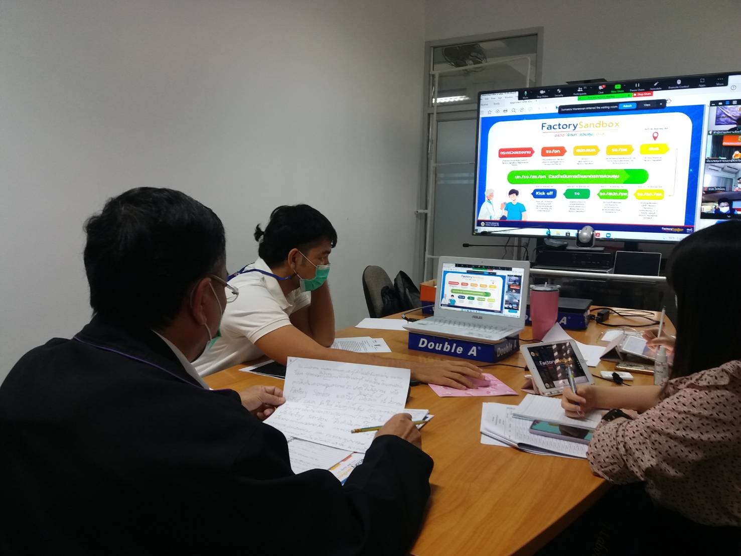 วันที่ 19 สิงหาคม 2564 นายวิชิตร สุวรรณมาก แรงงานจังหวัดนนทบุรี และเจ้าหน้าที่สำนักงานแรงงานจังหวัดนนทบุรี ร่วมประชุมคณะกรรมการโรคติดต่อจังหวัดนนทบุรี เพื่อหารือเกี่ยวกับสถานการณ์การแพร่ระบาดของโรคติดเชื้อไวรัสโคโรนา 2019 ในจังหวัดนนทบุรี และนำเสนอหลักการ โครงการ Factory Sandboxจังหวัดนนทบุรี ผ่านระบบวีดีทัศน์ทางไกล (VCUBE-ZOOM) โดยมี นายสุจินต์ ไชยชุมศักดิ์ ผู้ว่าราชการจังหวัดนนทบุรี เป็นประธานการประชุม