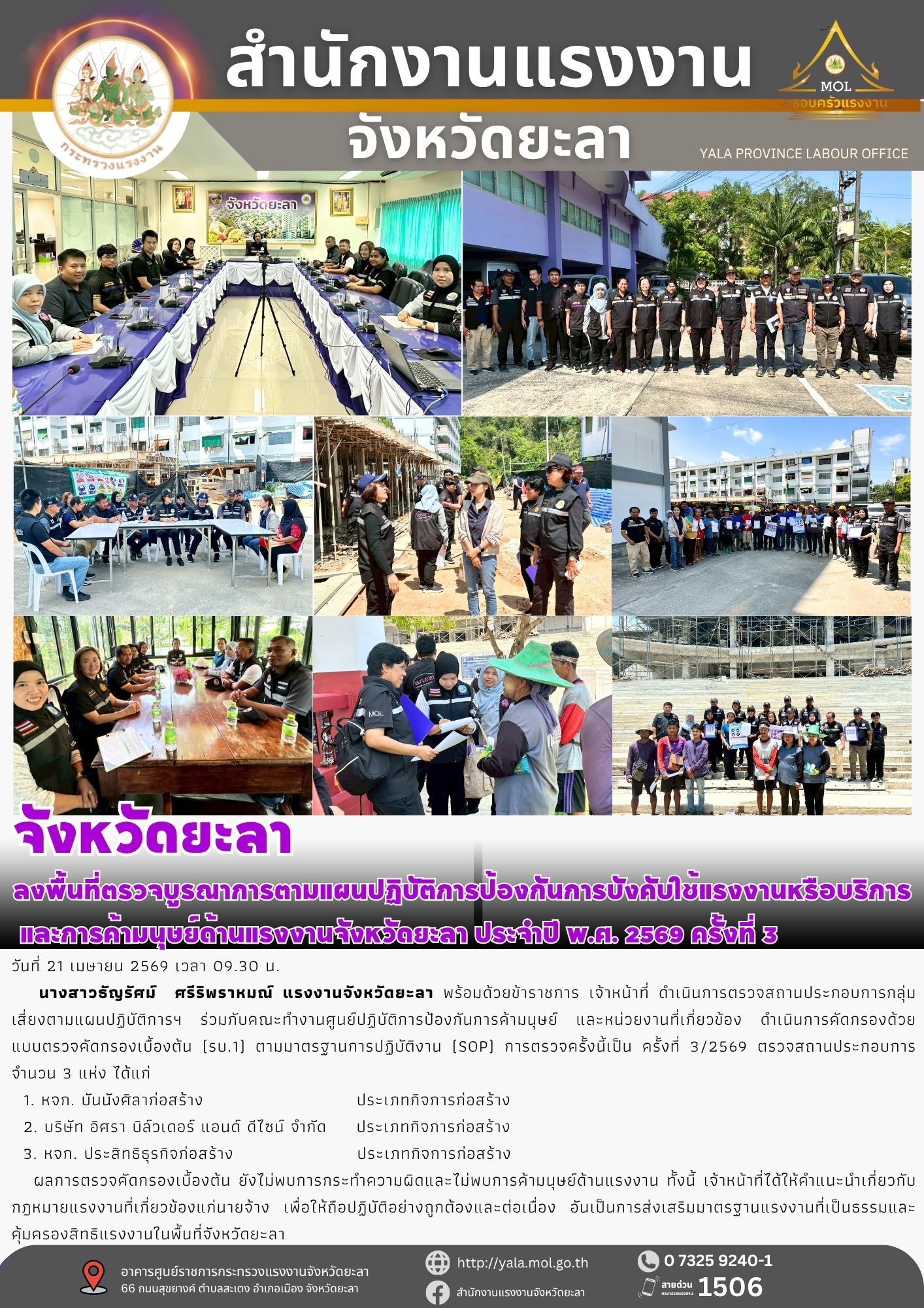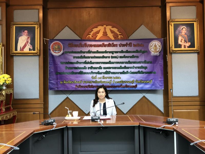 วันพฤหัสบดีที่ 19 กันยายน 2562 เวลา 09.00 น. ณ ห้องประชุมรัตนาธิเบศร์ ชั้น 5 ศาลากลางจังหวัดนนทบุรี จังหวัดนนทบุรี : นางกัญจนาภรณ์ ไซกัล แรงงานจังหวัดนนทบุรี เข้าร่วมพิธีมอบใบประกาศเกียรติคุณโครงการมาตรฐานการป้องกันและแก้ไขปัญหายาเสพติดในสถานประกอบกิจการ (มยส.) และโครงการโรงงานสีขาว โดยมีนางนิศากร วิศิษฏ์สรอรรถ รองผู้ว่าราชการจังหวัดนนทบุรี เป็นประธานในพิธี ซึ่งกิจกรรมดังกล่าวมีวัตถุประสงค์เพื่อเสริมสร้างสถานประกอบกิจการให้มีความเข้มแข็ง มีระบบเฝ้าระวังปัญหาอย่างยั่งยืน โดยให้มีการดำเนินการตามข้อกำหนดและรับการตรวจประเมินจนกระทั่งผ่านหลักเกณฑ์ ทั้งนี้ในปี 2562 มีสถานประกอบกิจการที่ผ่านหลักเกณฑ์และได้รับใบประกาศเกียรติคุณ จำนวน 72 แห่ง
