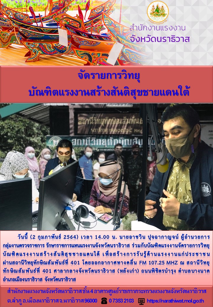 แรงงานจังหวัดนราธิวาส จัดรายการวิทยุบัณฑิตแรงงานสร้างสันติสุขชายแดนใต้