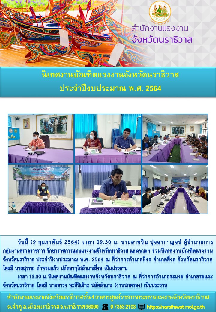 แรงงานจังหวัดนราธิวาส นิเทศงานบัณฑิตแรงงานจังหวัดนราธิวาส ประจำปีงบประมาณ พ.ศ. 2564