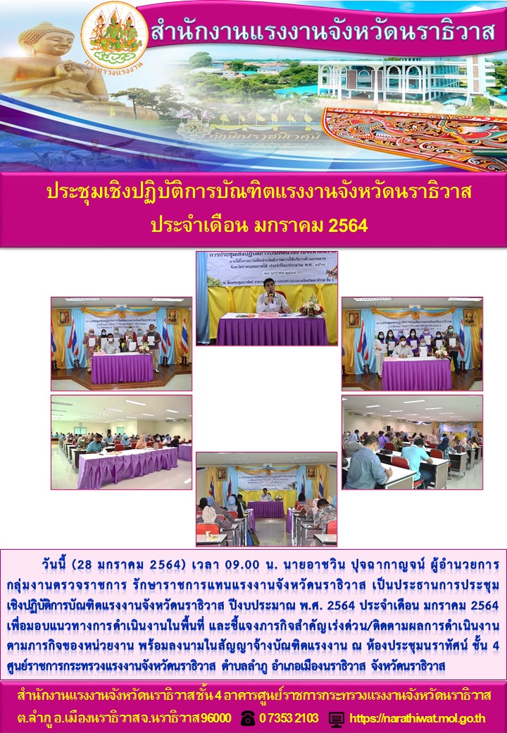 แรงงานจังหวัดนราธิวาส ประชุมเชิงปฏิบัติการบัณฑิตแรงงานจังหวัดนราธิวาสประจำเดือน มกราคม 2564