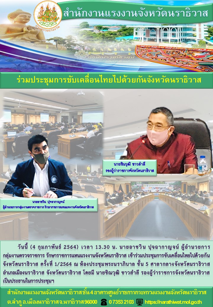 แรงงานจังหวัดนราธิวาส ร่วมประชุมการขับเคลื่อนไทยไปด้วยกันจังหวัดนราธิวาส