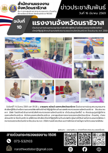 วันจันทร์ที่ 16 มีนาคม 2569 เวลา 09.30 น. นายสุนทร หมัดแล้ แรงงานจังหวัดนราธิวาส เป็นประธานการประชุมคณะอนุกรรมการคัดเลือกผู้ได้รับบำเหน็จความชอบกรณีพิเศษให้แก่เจ้าหน้าที่ผู้ปฏิบัติงานด้านยาเสพติดกระทรวงแรงงานจังหวัดนราธิวาส ปีงบประมาณ พ.ศ. 2568 โดยมีหัวหน้าส่วนราชการในสังกัดกระทรวงแรงงานจังหวัดนราธิวาส เข้าร่วมประชุมในครั้งนี้ ณ ห้องประชุมศูนย์ปฏิบัติการแรงงานจังหวัดนราธิวาส สำนักงานแรงงานจังหวัดนราธิวาส อาคารศูนย์ราชการกระทรวงแรงงานจังหวัดนราธิวาส ตำบลลำภู อำเภอเมืองนราธิวาส จังหวัดนราธิวาส เพอื่พิจารณาคัดเลือกเจ้าหน้าที่ผู้ปฏิบัติงานด้านยาเสพติด ผู้สมควรได้รับบำเหน็จความชอบกรณีพิเศษ ฯ กระทรวงแรงงานจังหวันราธิวาส ปีงบประมาณ พ.ศ. 2568 ตามหลักเกณฑ์และแนวทางพิจารณาบำเหน็ญความดีความชอบกรณีพิเศษ