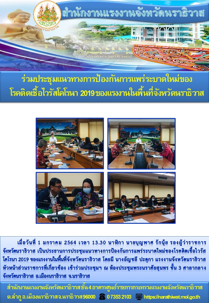 แรงงานจังหวัดนราธิวาส ร่วมประชุมแนวทางการป้องกันการแพร่ระบาดใหม่ของโรคติดเชื้อไวรัสโคโรนา 2019 ของแรงงานในพื้นที่จังหวัดนราธิวาส