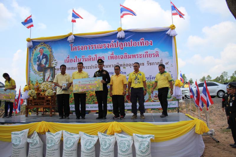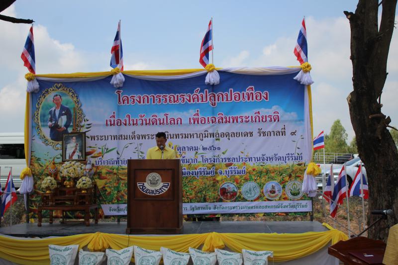 วันที่ 18 ตุลาคม 2561 เวลา 10.00 น. นางมาลัยอร หิรัณยรัชต์ แรงงานจังหวัดบุรีรัมย์ ร่วมกิจกรรรมโครงการรณรงค์ปลูกปอเทือง เนื่องในวันดินโลก เพื่อเฉลิมพระเกียรติ พระบาทสมเด็จพระปรมินทรมหาภูมิพลอดุลยเดช รัชกาลที่ 9 ณ บริเวณท้ายอ่างเก็บน้ำห้วยจรเข้มาก โดยมีนายดำรงชัย เนรมิตตกพงศ์ รองผู้ว่าราชการจังหวัดบุรีรัมย์ เป็นประธานในพิธี
