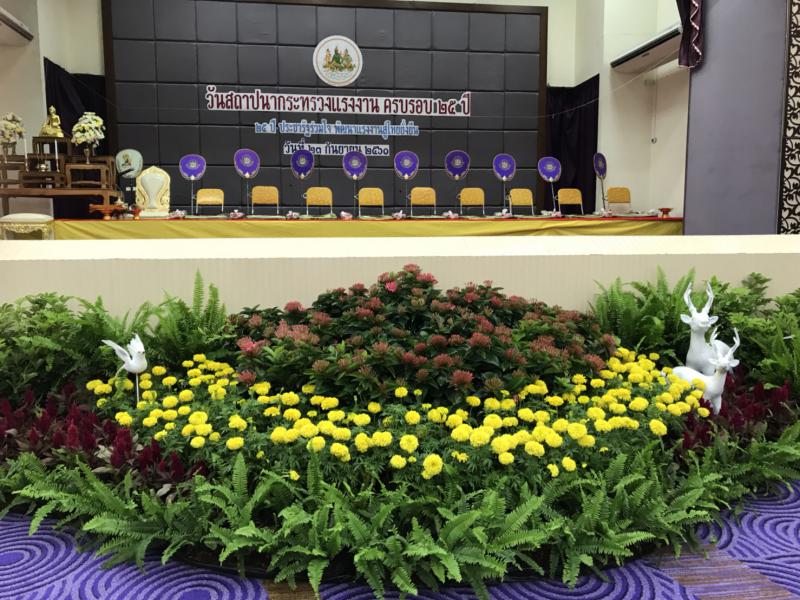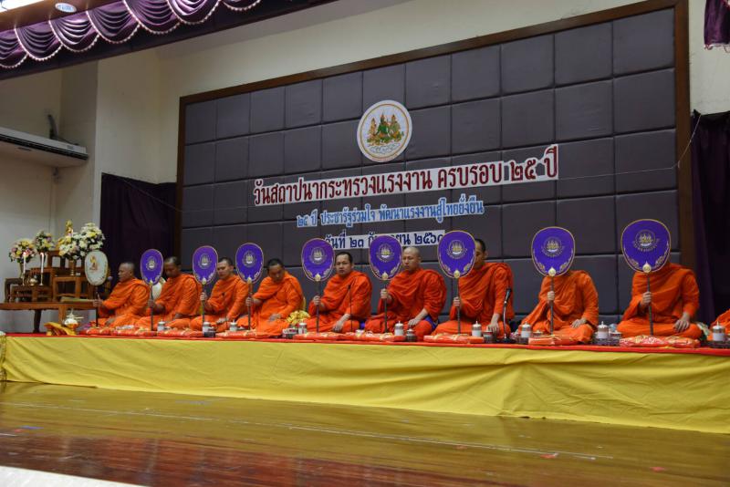 วันที่ ๒๓ กันยายน ๒๕๖๑ เวลา ๐๖.๓๙ น. นางมาลัยอร หิรัณยรัชต์ แรงงานจังหวัดบุรีรัมย์ ร่วมพิธีถวายภัตตาหารเช้าแด่พระสงฆ์ จำนวน ๑๐ รูป กิจกรรมพิธีบำเพ็ญกุศลให้กับอดีตผู้บริหาร ข้าราชการ และเจ้าหน้าที่กระทรวงแรงงานที่ล่วงลับ ณ ห้องประชุมจอมพล ป.พิบูลสงคราม ชั้น ๕ อาคารกระทรวงแรงงาน และกิจกรรมพิธีเจริญพระพุทธมนต์ โดยรัฐมนตรีว่าการกระทรวงแรงงาน ได้สักการะพระพุทธสุทธิธรรมบพิตร ณ บริเวณด้านหน้าอาคารกระทรวงแรงงาน และสักการะพระพุทธชินราช ณ บริเวณด้านหน้าอาคารกรมพัฒนาฝีมือแรงงาน จากนั้นรัฐมนตรีว่าการกระทรวงแรงงาน เป็นประธานในพิธีพราหมณ์ ณ บริเวณศาลพระภูมิชัยมงคลและศาลท้าวมหาพรหมเทวฤทธิ์ ด้านหน้าอาคารศูนย์บริการจัดหางานเพื่อคนไทย (Smart Job Center) เพื่อความเป็นสิริมงคลเนื่องในวันคล้ายวันสถาปนากระทรวงแรงงาน ประจำปี ๒๕๖๑ โดยมีนายจรินทร์ จักกะพาก ปลัดกระทรวงแรงงาน ผู้บริหารระดับสูง หัวหน้าส่วนราชการ ข้าราชการและเจ้าหน้าที่ในสังกัดกระทรวงแรงงาน เข้าร่วมพิธีโดยพร้อมเพรียงกัน โดยมีพลตำรวจเอก อดุลย์ แสงสิงแก้ว รัฐมนตรีว่าการกระทรวงแรงงาน เป็นประธานในพิธี