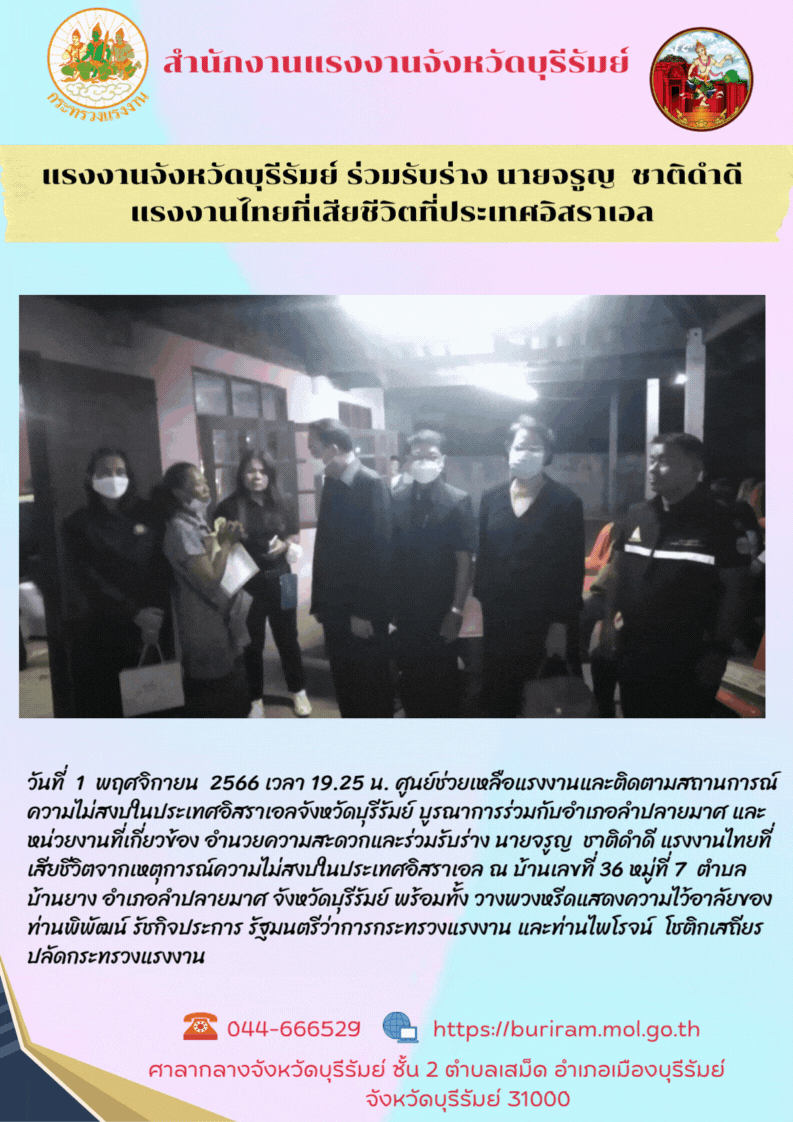 สรจ.บุรีรัมย์ ร่วมรับร่าง นายจรูญ ชาติดำดี แรงงานไทยที่เสียชีวิตที่ประเทศอิสราเอล
