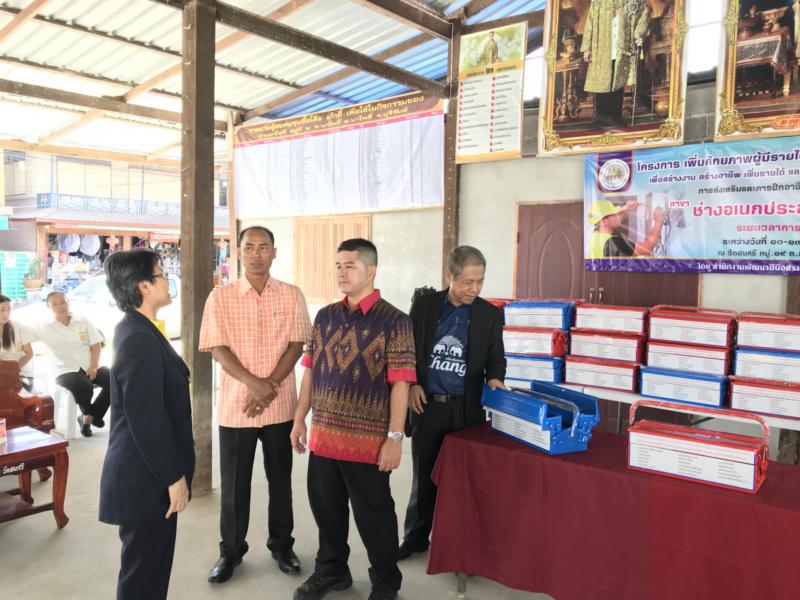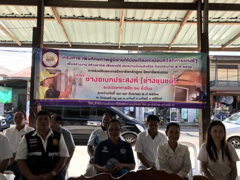 วันพุธที่ ๑๙ กันยายน ๒๕๖๑ นางมาลัยอร หิรัณยรัชต์ แรงงานจังหวัดบุรีรัมย์ ร่วมเป็นเกียรติในพิธีปิดฝึกอบรมโครงการเพิ่มศักยภาพผู้มีรายได้น้อยที่ลงทะเบียนสวัสดิการแห่งรัฐเพื่อสร้างงาน สร้างอาชีพ เพิ่มรายได้และความมั่นคงในชีวิต กิจกรรมส่งเสริมและฝึกอาชีพ หลักสูตรอาชีพเร่งด่วนช่างอเนกประสงค์ (ช่างชุมชน) และร่วมมอบวุฒิบัตร และกล่องเครื่องมือช่าง แก่ผู้ผ่านการฝึกอบรม ตามเจตนาที่ว่า "จะไม่ทิ้งใครไว้ข้างหลัง" จำนวน ๕๘ คน ระหว่างวันที่ ๑๐ – ๑๙ กันยายน ๒๕๖๑ ณ วัดสมศรี ตำบลนาโพธิ์ อำเภอนาโพธิ์ จังหวัดบุรีรัมย์