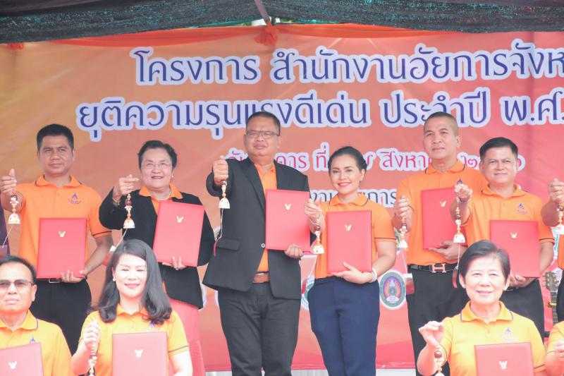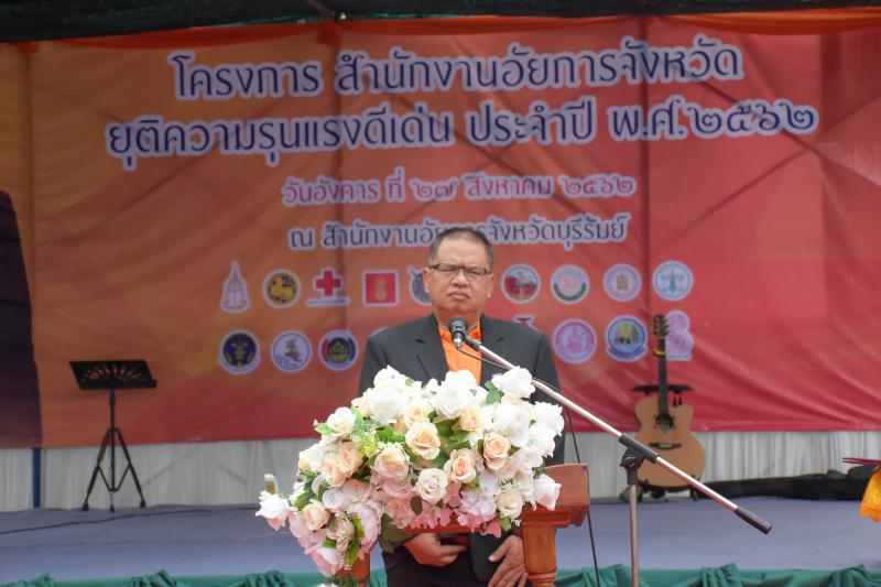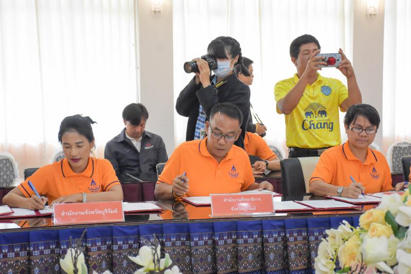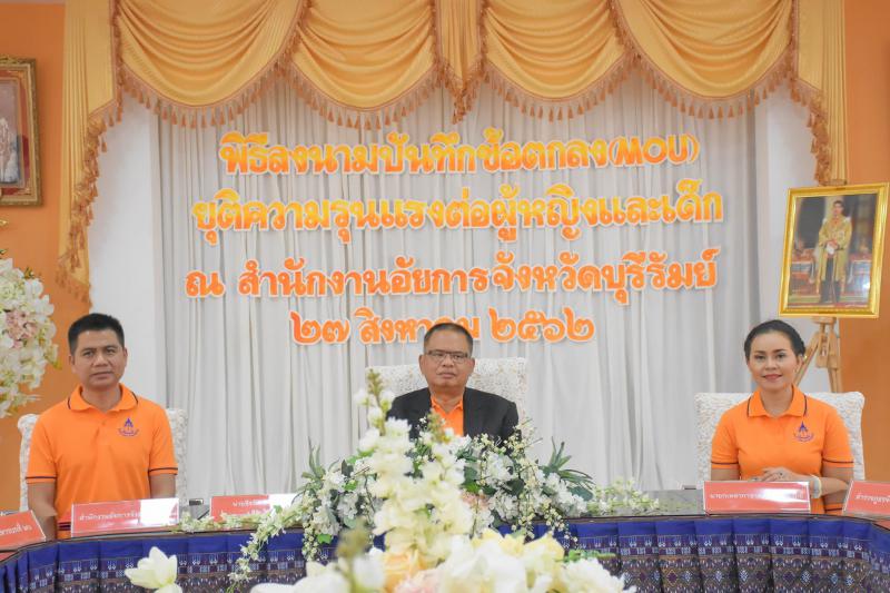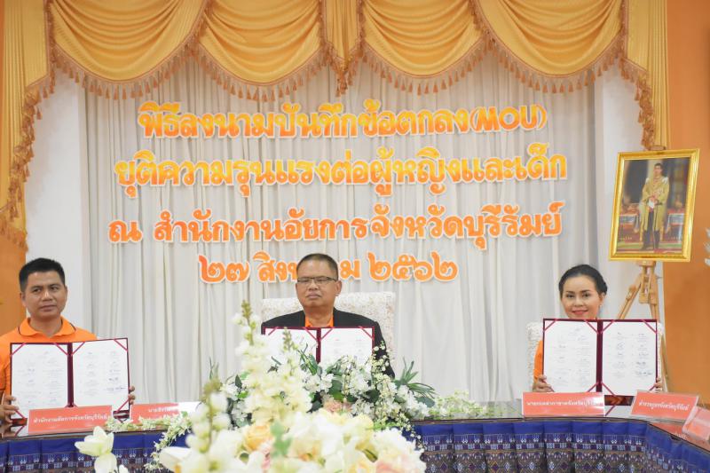 วันที่ ๒๗ สิงหาคม ๒๕๖๒ เวลา ๐๙.๓๐ น. นางมาลัยอร หิรัณยรัชต์ แรงงานจังหวัดบุรีรัมย์ ร่วมโครงการสำนักงานอัยการยุติความรุนแรงดีเด่น ประจำปี ๒๕๖๒ และร่วมลงนามร่วมกับหัวหน้าส่วนราชการ หน่วยงานทหาร ตำรวจ อัยการ ภาคเอกชน มูลนิธิ และสถานบันการศึกษา ในการร่วมมือขจัดความรุนแรงต่อผู้หญิง และเด็กทุกรูปแบบที่ สำนักงานอัยการจังหวัดบุรีรัมย์ โดยมีนายธีรวัฒน์ วุฒิคุณ ผู้ว่าราชการจังหวัดบุรีรัมย์ เป็นประธาน