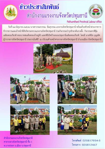 แรงงานจังหวัดปทุมธานี ร่วมกิจกรรมบำรุงรักษาต้นรวงผึ้ง กิจกรรมทาสีซุ้มเฉลิมพระเกียรติ พระบาทสมเด็จพระเจ้าอยู่หัวฯ