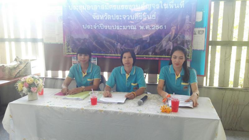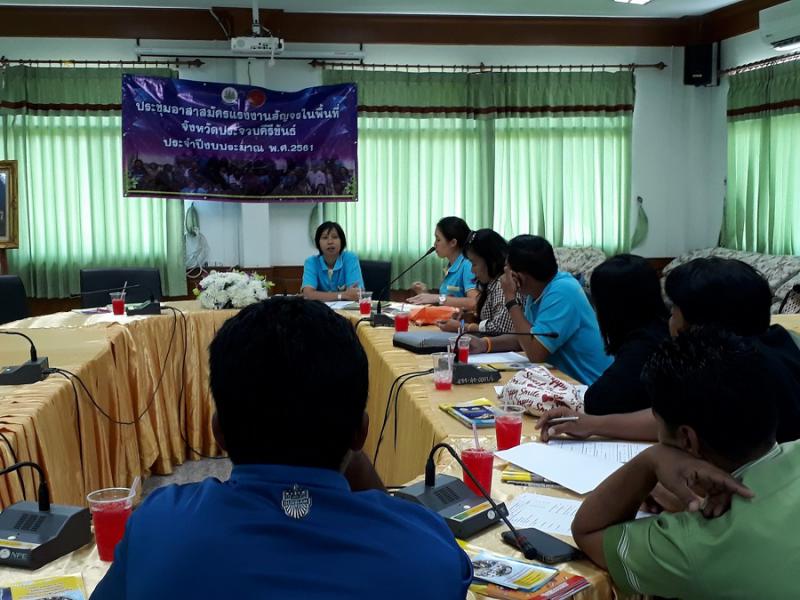 วันที่ 10 พฤษภาคม 2561 นางสาวกรจิรัฏฐ์ พงจันทร์ศธร แรงงานจังหวัดประจวบคีรีขันธ์ มอบหมายให้นางสาวมยุรี อินต๊ะมา นักวิชาการแรงงานชำนาญการ พร้อมด้วยพี่เลี้ยงอาสาสมัครแรงงาน ออกตรวจนิเทศการปฏิบัติงานของอาสาสมัครแรงงานและเครือข่ายด้านแรงงาน ตามโครงการประชุมอาสาสมัครแรงงานสัญจรในพื้นที่ จังหวัดประจวบคีรีขันธ์ ประจำปีงบประมาณ 2561 เพื่อติดตามผลการปฏิบัติงาน แจ้งนโยบายสำคัญของรัฐบาลและกระทรวงแรงงาน พร้อมทั้งรับฟังปัญหาอุปสรรคในการปฏิบัติงาน ในพื้นที่อำเภอ 2 อำเภอ ได้แก่ อำเภอหัวหิน และ อำเภอปราณบุรี ในการนี้ ได้แจ้งให้ อสร.ตัวแทนระดับอำเภอพิจารณาคัดเลือก อสร. ที่มีผลงานโดดเด่น เพื่อสมัครเข้ารับการคัดเลือกเป็นอาสาสมัครแรงงานดีเด่นระดับจังหวัด และเป็นตัวแทนของจังหวัด เข้ารับการคัดเลือกในระดับประเทศต่อไป