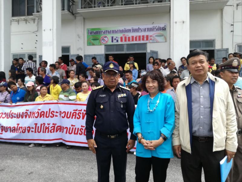 วันที่ 1 สิงหาคม 2561 เวลา 09.00 น. นางสาวกรจิรัฏฐ์ พงจันทร์ศธร แรงงานจังหวัดประจวบคีรีขันธ์ พร้อมด้วยนายธนกร นราวุฒิพันธ์ จัดหางานจังหวัดประจวบคีรีขันธ์ และนายประสพชัย สินธุเสน สวัสดิการและคุ้มครองแรงงานจังหวัดประจวบคีรีขันธ์ ร่วมประชุมชี้แจงข้อเท็จจริง พร้อมทั้งเตรียมข้อมูลการชุมนุมของกลุ่มชาวประมง เพื่อนำเสนอให้นายธีรพันธ์ นันทกิจ รองผู้ว่าราชการจังหวัดประจวบคีรีขันธ์ทราบ ต่อมา เวลา 10.00 น. รองผู้ว่าราชการจังหวัดประจวบคีรีขันธ์ พร้อมด้วยหัวหน้าส่วนราชการที่เกี่ยวข้องตามข้อเรียกร้องของชาวประมง ทำการพบชาวประมง เพื่อร่วมกันหาแนวทางในการแก้ไขปัญหาความเดือดร้อนของชาวประมงตามข้อเรียกร้องดังกล่าว ณ บริเวณหน้าศาลากลางจังหวัดประจวบคีรีขันธ์ อำเภอเมืองฯ จังหวัดประจวบคีรีขันธ์