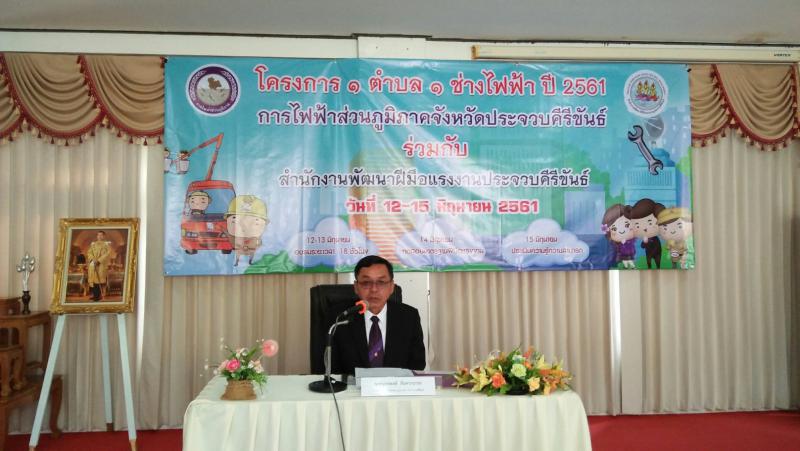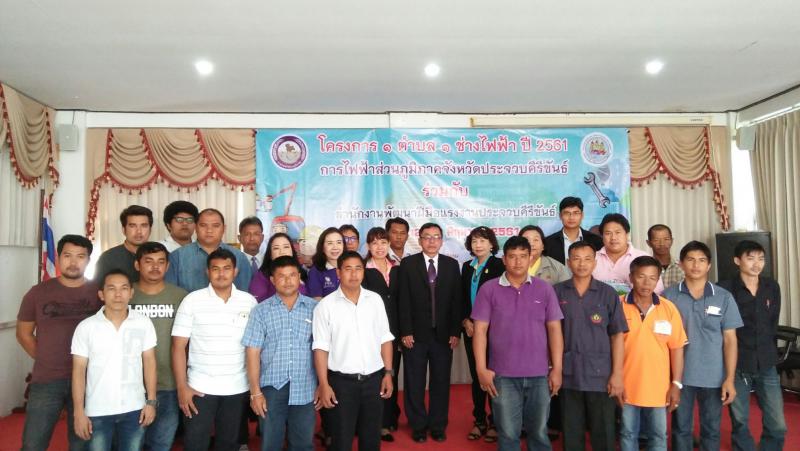 วันที่ 12 มิถุนายน 2561 เวลา 08.00 น. นางสาวกรจิรัฏฐ์ พงจันทร์ศธร แรงงานจังหวัดประจวบคีรีขันธ์ พร้อมด้วย นางสาวสาคร สนธิเจริญ นักวิชาการแรงงานชำนาญการพิเศษ ร่วมเปิดการฝึกอบรมตามโครงการ 1 ตำบล 1 ช่างไฟฟ้า โดยสำนักงานพัฒนาฝีมือแรงงานประจวบคีรีขันธ์ร่วมกับการไฟฟ้าส่วนภูมิภาคจังหวัดประจวบคีรีขันธ์ มีผู้เข้าร่วมโครงการ จำนวน 20 คน โดยผู้เข้าร่วมโครงการจะได้รับการฝึกอบรมในสาขาช่างไฟฟ้าภายในอาคาร การทดสอบมาตรฐานฝีมือแรงงาน และรับรองความรู้ความสามารถตามลำดับ ระหว่างวันที่ 12 – 15 มิถุนายน 2561 ณ สำนักงานพัฒนาฝีมือแรงงานประจวบคีรีขันธ์ ตำบลอ่าวน้อย อำเภอเมืองฯ จังหวัดประจวบคีรีขันธ์ โดยมี นายยุทธพงษ์ สันตวรนารถ รองผู้จัดการการไฟฟ้าส่วนภูมิภาคจังหวัดประจวบคีรีขันธ์ เป็นประธานในพิธีเปิดการฝึกอบรมตามโครงการฯ และนางสาวกอบกุล มะลิวัลย์ ผู้อำนวยการสำนักงานพัฒนาฝีมือแรงงานประจวบคีรีขันธ์ กล่าวให้โอวาทแก่ผู้เข้ารับการอบรมดังกล่าวฯ