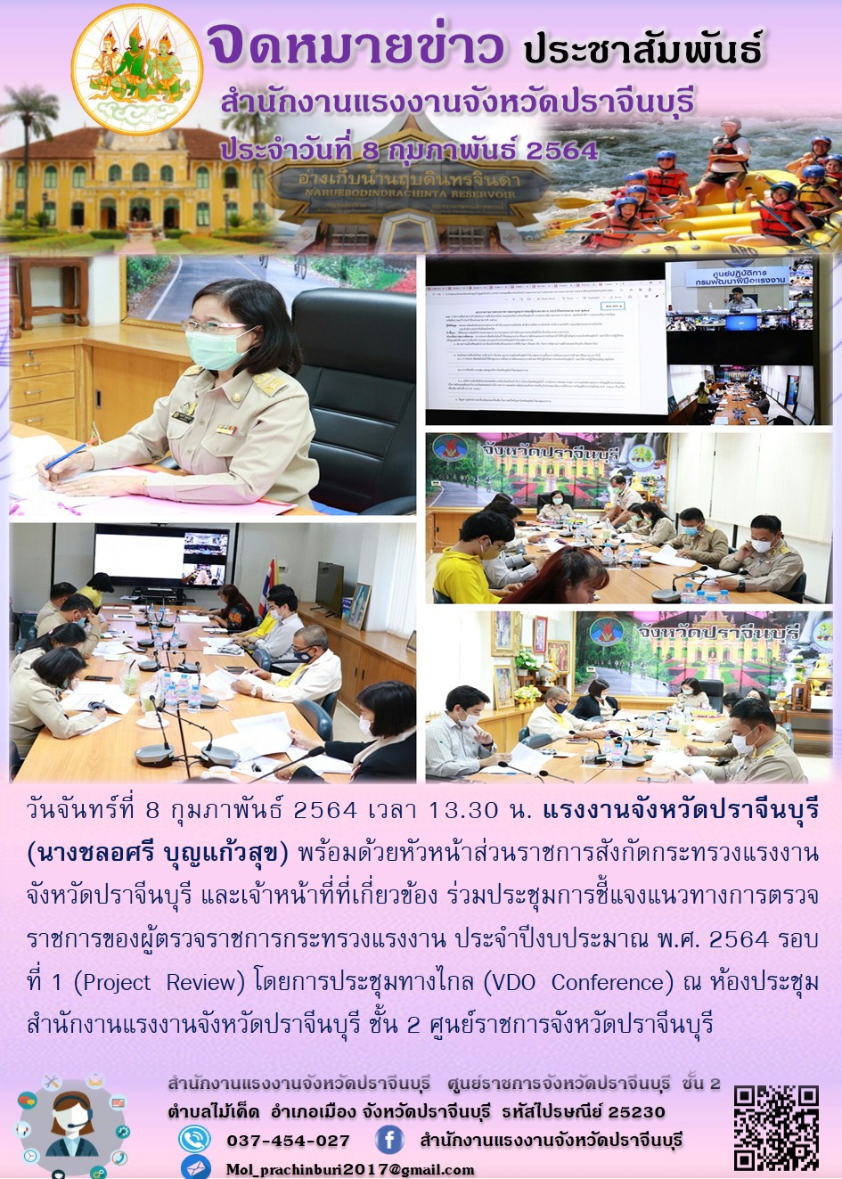 แรงงานจังหวัดปราจีนบุรี ร่วมประชุมการชี้แจงแนวทางการตรวจราชการของผู้ตรวจราชการกระทรวงแรงงาน ประจำปีงบประมาณ พ.ศ. 2564