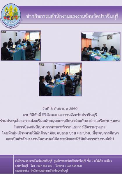 นายกิติศักดิ์ ศิริมังคละ แรงงานจังหวัดปราจีนบุรีร่วมประชุมโครงการส่งเสริมสนับสนุนสถานศึกษาร่วมกับองค์กรเครือข่ายชุมชนในการป้องกันปัญหาการ