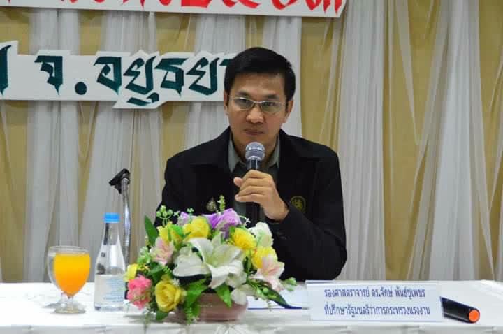 วันที่ 15 มกราคม 2563 ณ ห้องเฟื่องฟ้า ชั้น 2 โรงแรมริเวอร์วิว เพลส อำเภอพระนครศรีอยุธยา จังหวัดพระนครศรีอยุธยา รองศาสตราจารย์ ดร.จักษ์ พันธ์ชูเพชร ที่ปรึกษารัฐมนตรีว่าการกระทรวงแรงงาน กล่าวเปิดโครงการเสริมสร้างศักยภาพเครือข่ายอาสาสมัครแรงงาน และเป็นวิทยากรบรรยายพิเศษให้กับแกนนำอาสาสมัครแรงงานระดับตำบล และเครือข่าย จำนวน 209 คน มีหัวหน้าส่วนราชการสังกัดกระทรวงแรงงานจังหวัดพระนครศรีอยุธยา ให้การต้อนรับ นายประพนธ์ ศิลปรัศมี แรงงานจังหวัดพระนครศรีอยุธยา กล่าวรายงานการจัดโครงการฯ