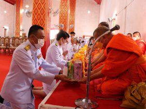 แรงงานจังหวัดพะเยา ร่วมประกอบพิธีถวายผ้ากฐินพระราชทาน ประจำปีพุทธศักราช 2564