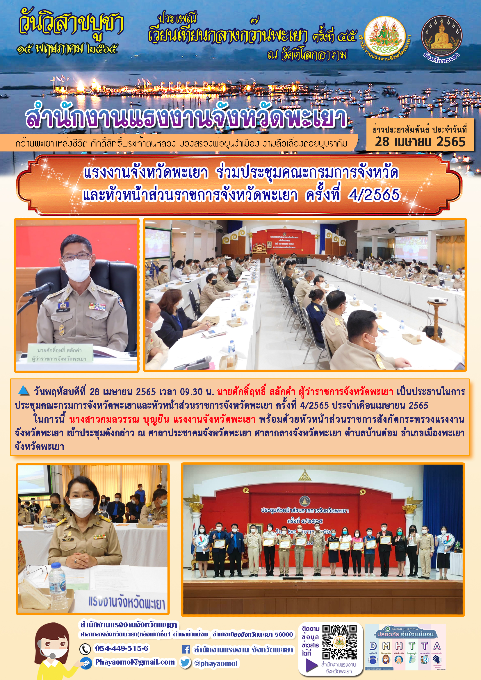 แรงงานจังหวัดพะเยา ร่วมประชุมคณะกรมการจังหวัดและหัวหน้าส่วนราชการจังหวัดพะเยา ครั้งที่ 4/2565