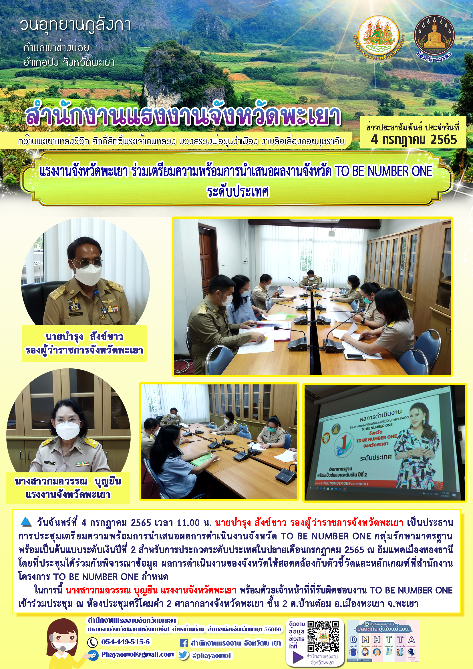 แรงงานจังหวัดพะเยา ร่วมเตรียมความพร้อมการนำเสนอผลงานจังหวัด TO BE NUMBER ONE ระดับประเทศ