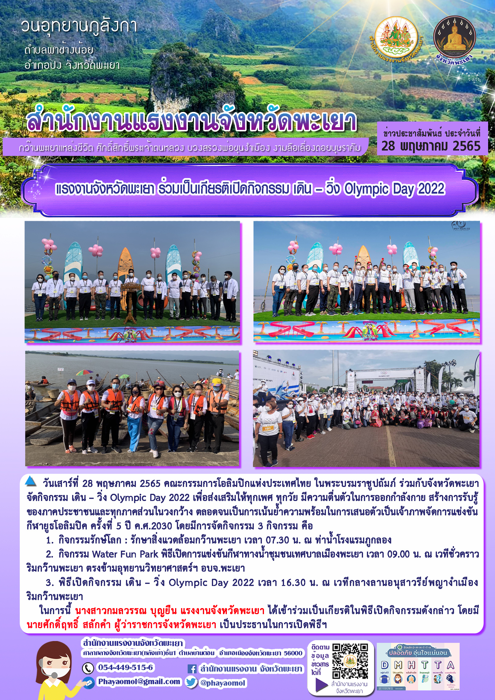 แรงงานจังหวัดพะเยา ร่วมเป็นเกียรติเปิดกิจกรรม เดิน – วิ่ง Olympic Day 2022