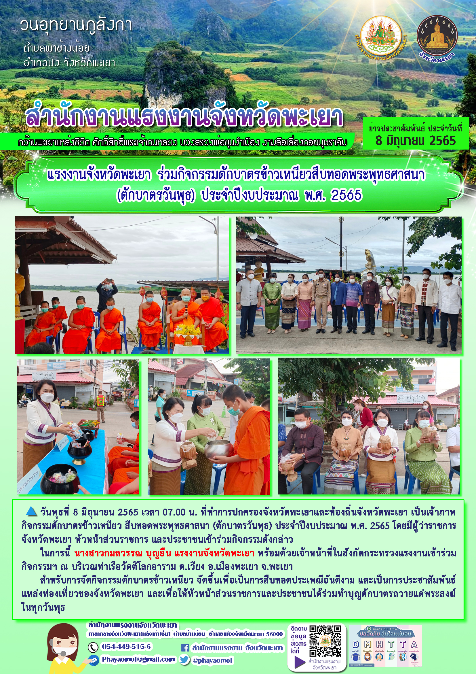 แรงงานจังหวัดพะเยา ร่วมกิจกรรมตักบาตรข้าวเหนียวสืบทอดพระพุทธศาสนา (ตักบาตรวันพุธ) ประจำปีงบประมาณ พ.ศ. 2565